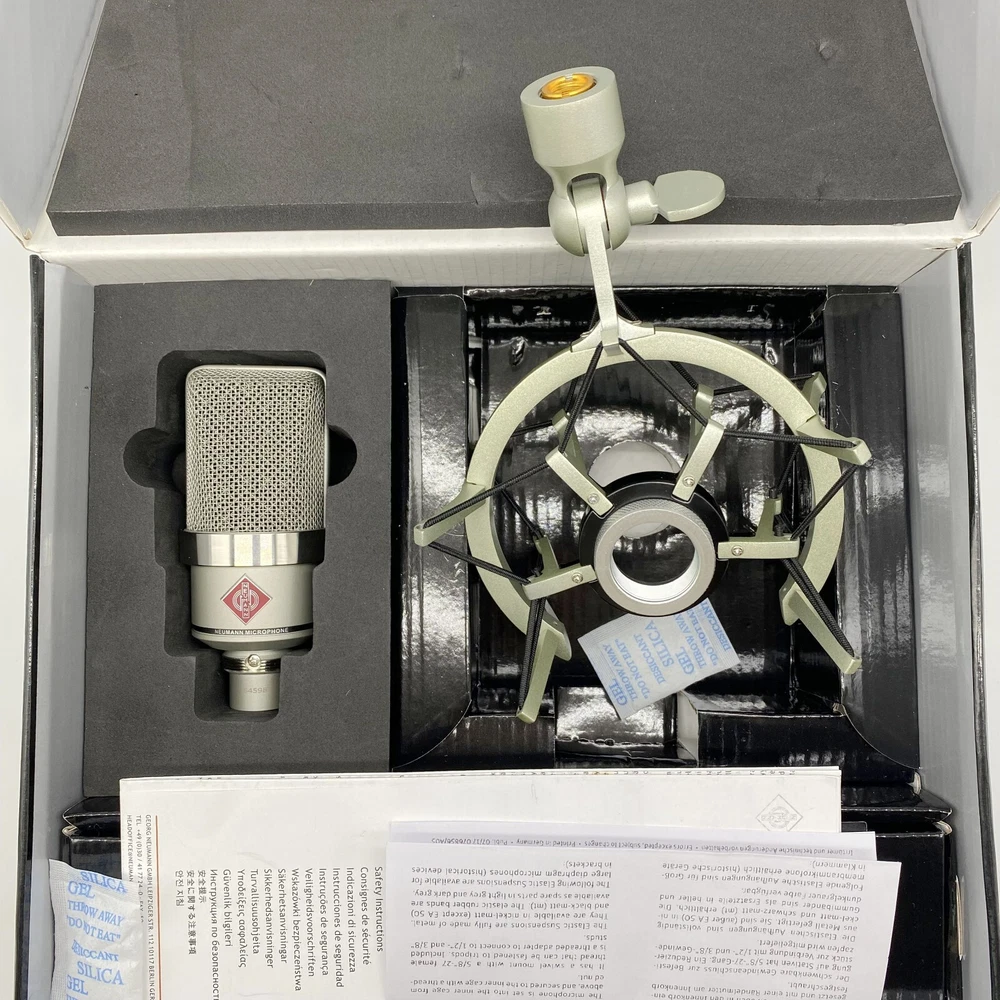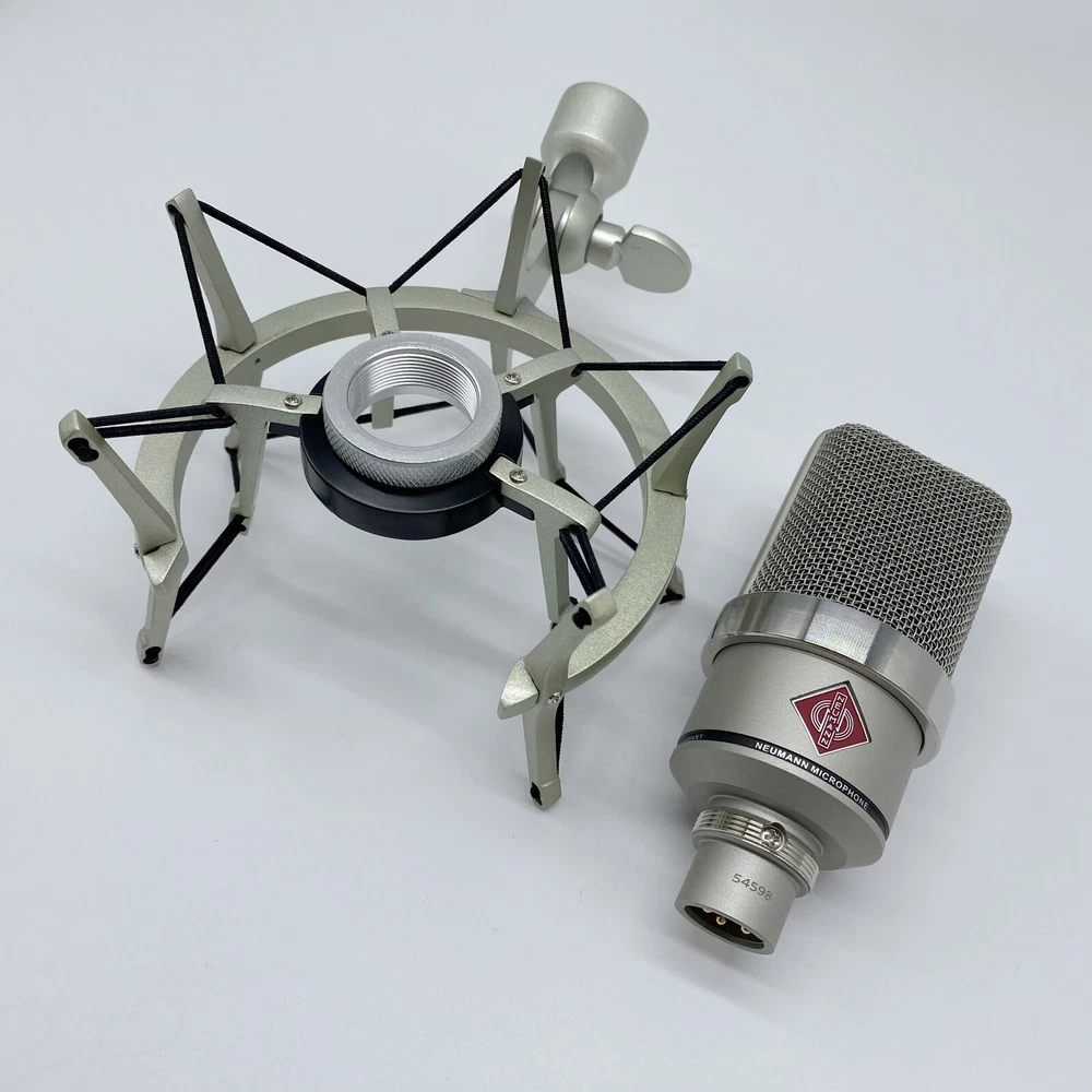 Styled in a nickel finish, TLM-102 Large-Diaphragm Studio Condenser Microphone from Neumann is a large diaphragm condenser microphone operating in a cardioid polar pattern. It has the ability to withstand very high sound pressure levels. The capsule, with its high SPL rating, permits the recording of percussion, drums, amplifiers, and other very loud sound sources. The microphone is equally capable when recording lower volume sounds due to its very fast transient response. However, its most important applications are in the realm of vocals and speech. A slight boost above 6 kHz provides great vocal presence, while below 6 kHz the frequency response is extremely linear for minimal coloration and a clearly defined bass range. The capsule has an elastic suspension for minimizing structure-borne noise, while an integrated pop screen in the grille aids in suppressing plosives in vocal and speech recording .