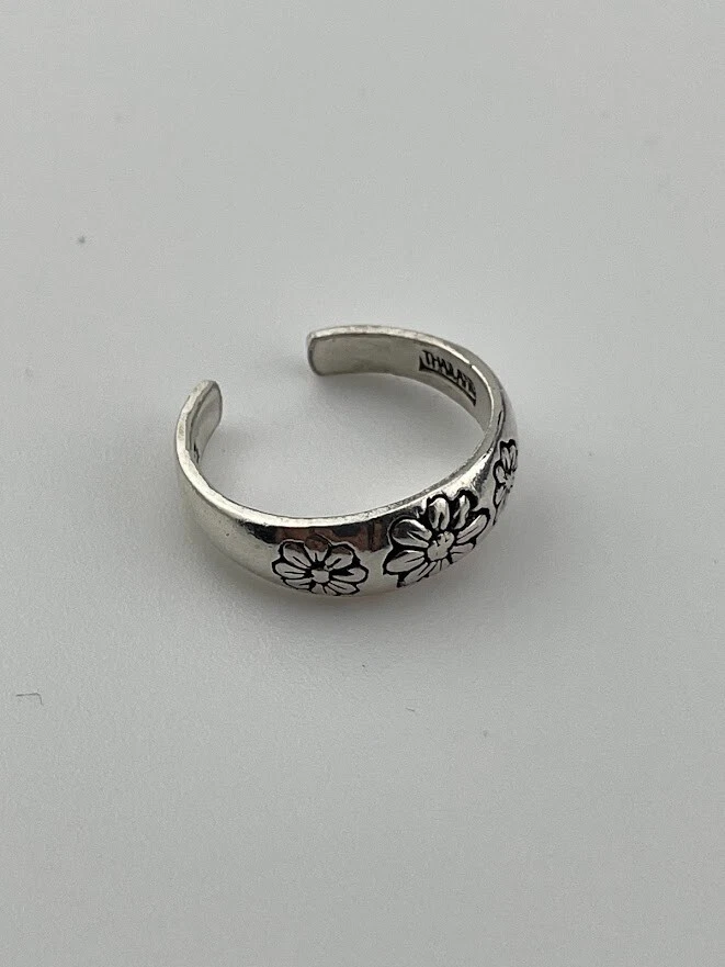 TMA THAILAND 925 STERLING SILVER DAISY FLORAL RING SIZE 4.5 TOE PINKY 2431 FINGERTIP ****************************** Thank you for your interest in our jewelry. We?d like to introduce ourselves. We are just a retired couple who love matching our customers with great jewelry. We?re not professional jewelers. To have the best shopping experience we like to recommend the following: Please measure your hand, wrist, finger or neck to ensure the best fit. We can use your measurements to help with sizing. Please ask all the questions you want. We know some stuff and, if we don?t, we?ll do the research. We like to learn too. More Stuff: If an item is described as ?gold over 925 sterling silver? this means it is gold vermeil. Vermeil is the process by which a layer of gold (usually 14k or 18k) is bonded to sterling silver. We only clean with gentle soap and warm water to avoid damage. The items we sell may be new or pre-owned and may have normal wear, slight damage, and/or tarnish. We make every effort to ensure the items we sell are as described. This includes testing to confirm metal purity if the item isn?t marked, and testing for gemstone identity. We try to put measurements in the jewelry description and include a photo of each piece with a U.S. quarter (25mm).