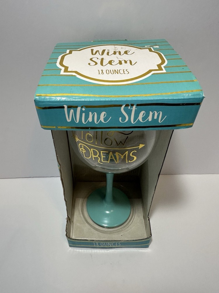 Brand New Sealed! 30 day free return! The TMD Holdings "Follow Your Dreams" 18 oz Wine Stem Glass is a beautiful and unique wine glass perfect for all occasions. Made of teal blue glass with a capacity of 18 ounces, this 8.5" glassware item features a decorative theme of "Follow Your Dreams." The wine glass is brand new in the package, making it a great addition to any home bar or kitchen collection. Ideal for both men and women, this wine glass is sure to add a touch of elegance to your drinkware collection.