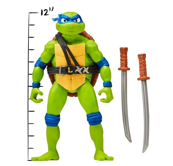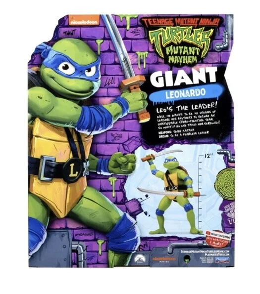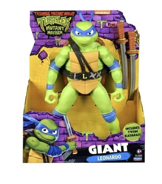 New in Original Box This TMNT Giant LEONARDO Teenage Mutant Ninja Turtles: Mutant Mayhem 12” Figure is a must-have for any fan of the popular animated adventures series. The figure comes with twin katanas and features an adjustable design, making it perfect for display or play. With its hard plastic and plastic material construction, this original action figure is built to last and is suitable for ages 4+. It is a 1:12 scale model of Leonardo, one of the four famous ninja turtles. The item is boxed and comes with a variety of features, including an animation studio, Nickelodeon, and a TV show. This Playmates Toys figure is perfect for collectors and fans alike, and is a great addition to any collection.