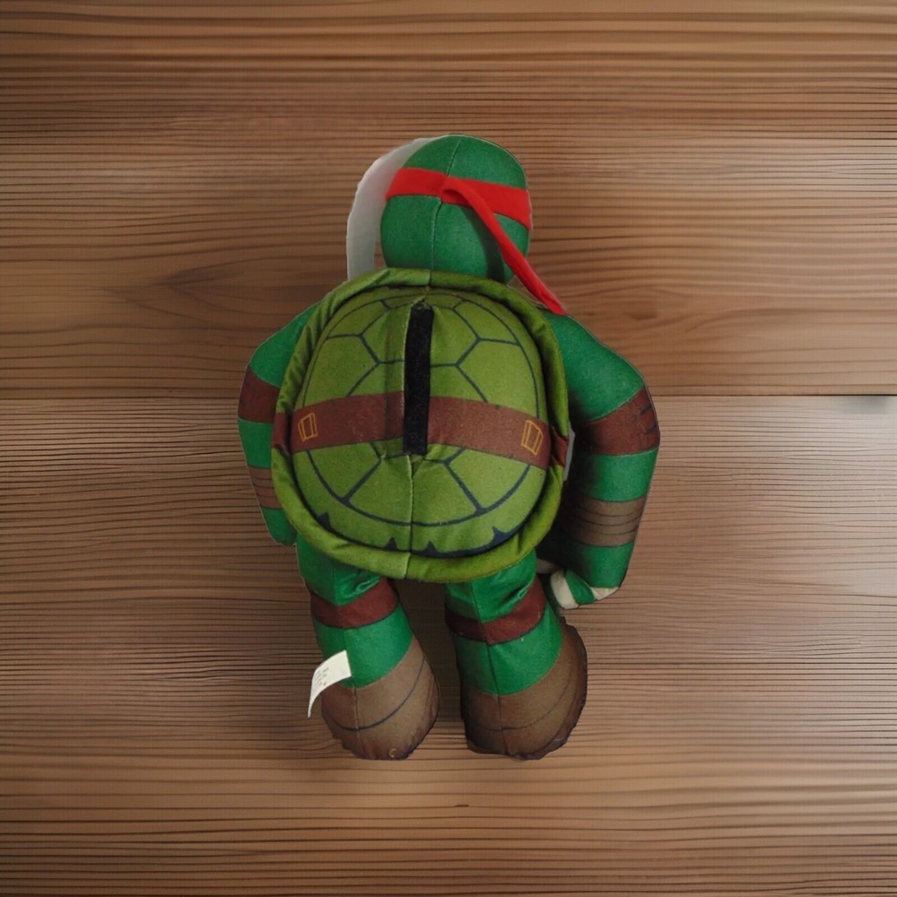 This 15-inch plush stuffed figure of Teenage Mutant Ninja Turtle's Rafael is a must-have for any fan of the franchise. With his iconic green color and character details, this toy is perfect for playtime and display. The turtle is washable, making it easy to keep clean and ready for more adventures. This Viacom licensed toy is recommended for children 3+ and features a talking function, bringing the beloved character to life. It's a great addition to any toy or stuffed animal collection, and the perfect gift for any Teenage Mutant Ninja Turtle fan.