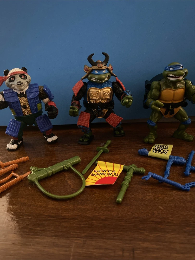 Sewer Samurai Leo: Near Complete Panda Khan: Near Complete Talkin Leonardo: Complete but no talking strips. Toon Donatello: Complete All figures are super clean and all have some or all of their accessories. I am open to offers so feel free. Great find!