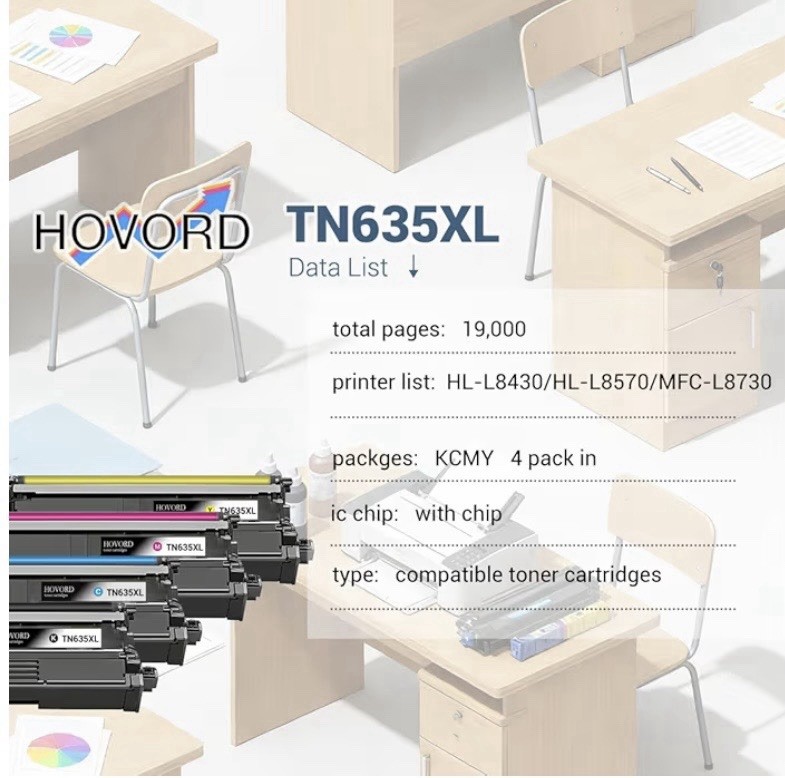 TN635XL Compatible Toner Cartridge Set – 4 Pack (CMYK) – NEW SEALED High-quality compatible toner set designed for Brother printers. Perfect for home, office, or business use with reliable performance and vibrant color output. FEATURES • High yield capacity – up to approx. 19,000 total pages • Built-in chip for easy installation and printer recognition • Sharp text and vivid color printing • Consistent, reliable performance ⸻ 🖨️ COMPATIBILITY Works with: • HL-L8430CDW • HL-L8430CDWT • HL-L8570CDW • MFC-L8730CDW • MFC-L8930CDW • MFC-L8970CDW • MFC-EX575 CONDITION Brand new, factory sealed in original packaging ⸻ SHIPPING FAST SHIPPING – SAME DAY HANDLING AVAILABLE