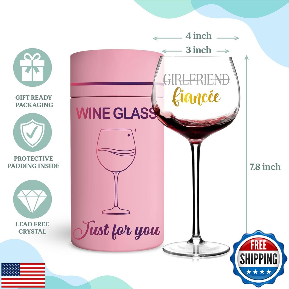 TOBYOVU Fiancée Gifts - Fiancée Gifts For Her - Fiancée Wine Glass Proposal, Anniversary, Wedding Decoration Gift For Bride, Wife, Her - Fiancée Wine Cup For Girlfriend, Mrs - Engagement Gifts Features Gifts for Fianceé her: Celebrate love with this beautifully designed wine glass, perfect for Birthday, Valentine’s Day, engagements, anniversaries, or any special moment together Fiancé Wine Glass: Made from premium glass, this wine glass offers exceptional clarity and durability, ensuring every sip feels special Perfect size for wine lover: Designed for enjoying red, white, or rosé wine, this glass provides the ideal balance between elegance and comfort Fiancée Wine Cup: Comes in secure and stylish packaging, making it easy to wrap and present as a meaningful and memorable gift Satisfaction Guaranteed: We care about customer service, ready to support you when you have any problems. If you have any questions, please contact us, we are always here for you. Shipping Free & Fast Shipping: We offer free shipping to most of the USA with a normal delivery time of 3-7 days. However, due to the current situation, additional delivery time (up to 3 weeks) may be required for some items. Alternative Carriers: We may use alternative carriers (e.g., USPS, FedEx, UPS) to ensure your package arrives safely and on time. Due to the use of multiple carriers, we are unable to provide a tracking number automatically. Handling Time: Orders are processed and shipped within 1-2 business days of receiving cleared payment. Shipping Restrictions: Shipping to Alaska, Hawaii, Puerto Rico, Guam, and other US territories may incur shipping charges or delivery restrictions. Please contact us before ordering, or your order can be refunded/cancelled. State Restrictions: Certain items may not be shipped to California due to state regulations. Contact for Tracking Updates: If you require tracking updates or have any concerns about the delivery of your order, please feel free to contact us, and we will be happy to assist you. Return Policy 30-Day Hassle-Free Returns: If you are not completely satisfied with your purchase, you can return the item for free within 30 days of receiving it for a full refund or exchange. Easy Return Process: Contact us, and we will provide you with a prepaid return shipping label and detailed instructions. No Restocking Fee: There are no restocking fees for returns. However, the buyer is responsible for return shipping costs if the return is not due to a seller's error. Refund Processing: Refunds will be processed within 1 business day of receiving the returned item in its original condition. Payment We accept all major credit cards, PayPal, and Apple Pay for your convenience. Your payment information is secure and encrypted to ensure a safe and seamless transaction. Please complete your payment within 3 days of purchase to avoid any delays in shipping. Feedback Your feedback is extremely important to us. We strive to provide the best products and customer service possible. If you are satisfied with your purchase, please take a moment to leave us a positive review. If you have any concerns or issues with your order, please contact us before leaving negative feedback. We are committed to resolving any problems and ensuring your satisfaction. Contact Us If you have any questions or concerns, please feel free to reach out to our customer support team. You can contact us through the eBay messaging system. We are available Monday to Friday, 9:00 am to 5:00 pm EST, and we will do our best to respond to your inquiry within 24 hours. Thank you for supporting our small family business!