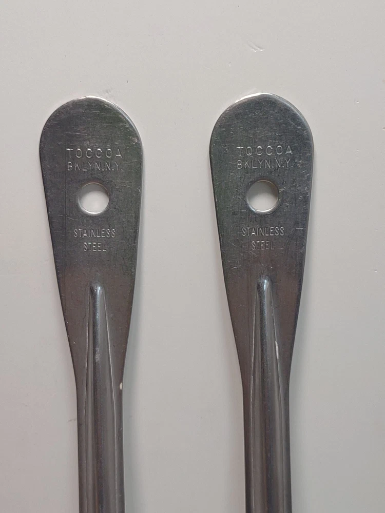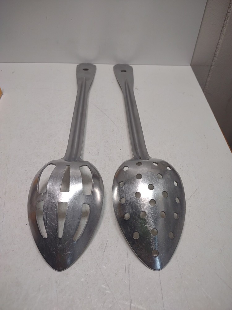 Please review photos from further description. Spoons are made from 14 gauge stainless. Spoons have light scratching from use. Any questions please ask. Thanks for looking.