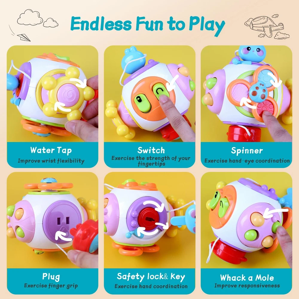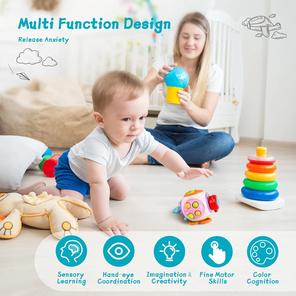 TOCULAB 7-18 Month Baby Toys, 6 in 1 Busy Cube, Sensory Toys for Toddlers Toys for Airplane Travel Montessori Educational Learning Toys Develop Fine Motor Skills Safe Educational Toy: Our Busy cube are made from high-quality materials, with smooth, polished edges that are free of any rough spots, ensuring they won't harm your baby's delicate skin. We pay meticulous attention to product details to guarantee 100% safety for your little one. These montessori toys for 18 months above are not only lighter and more portable than traditional wooden toys but also durable and impact-resistant, providing hours of safe and enjoyable playtime. 6 in 1 sensory toys: This interactive toy features 6 sides, including a fingertip spinner, a lock and key for safety, a squeaker, switches, plugs, a faucet, and a whack-a-mole game. Each section can be individually detached and played with, allowing your child to experience the joy of discovery. Play and Learn: Our Montessori Activity Cube, with its vibrant colors and beautiful design, is sure to captivate their attention. This allows your child to stay engaged and entertained while enjoying both fun and learning. It enhances hand-eye coordination, color recognition skills, and cultivates their senses and coordination, promoting the development of fine motor skills. It effectively alleviates anxiety and releases stress in children while providing a joyful experience full of exploration. Toddler Travel Toy: This compact and lightweight toy is designed with travel in mind, making it perfect for keeping little hands and minds busy on planes, trains, and automobiles. It's the ideal companion for children on the go. For 3-year-olds, it's a fantastic airplane travel toy. Gift for Babies: The car activities for kids is a valuable parent-child game that enhances interaction with your child. The busy board has dimensions of 5.5 x 5.5 x 4.3 inches, making it a perfect infant toy for little hands. It is compact and easy to carry. The travel activities for kids provides both entertainment and educational value, making it the perfect gift for babies aged 18 months or toddlers aged 2-3 years who are beginning to walk. Note: Contains small parts, posing a choking or swallowing hazard for children! Safe Educational Toy: Our Busy cube are made from high-quality materials, with smooth, polished edges that are free of any rough spots, ensuring they won't harm your baby's delicate skin. We pay meticulous attention to product details to guarantee 100% safety for your little one. These montessori toys for 18 months above are not only lighter and more portable than traditional wooden toys but also durable and impact-resistant, providing hours of safe and enjoyable playtime. 6 in 1 sensory toys: This interactive toy features 6 sides, including a fingertip spinner, a lock and key for safety, a squeaker, switches, plugs, a faucet, and a whack-a-mole game. Each section can be individually detached and played with, allowing your child to experience the joy of discovery. Play and Learn: Our Montessori Activity Cube, with its vibrant colors and beautiful design, is sure to captivate their attention. This allows your child to stay engaged and entertained while enjoying both fun and learning. It enhances hand-eye coordination, color recognition skills, and cultivates their senses and coordination, promoting the development of fine motor skills. It effectively alleviates anxiety and releases stress in children while providing a joyful experience full of exploration. Toddler Travel Toy: This compact and lightweight toy is designed with travel in mind, making it perfect for keeping little hands and minds busy on planes, trains, and automobiles. It's the ideal companion for children on the go. For 3-year-olds, it's a fantastic airplane travel toy. Gift for Babies: The car activities for kids is a valuable parent-child game that enhances interaction with your child. The busy board has dimensions of 5.5 x 5.5 x 4.3 inches, making it a perfect infant toy for little hands. It is compact and easy to carry. The travel activities for kids provides both entertainment and educational value, making it the perfect gift for babies aged 18 months or toddlers aged 2-3 years who are beginning to walk. Note: Contains small parts, posing a choking or swallowing hazard for children! Shipping from the USA All of our products are shipped from the USA, ensuring quick delivery to your destination. Payment We offer the following payment methods: PayPal, credit card, bank transfer, and eBay's secure payment system. Free Shipping & Free Returns Shipping within the USA is FREE. Additionally, any return is absolutely free for you. Risk-Free Purchase You have the option to return an item within 30 days without any justification. We cover the return shipping costs! Fast Shipping We ship immediately upon receipt of payment. Generally, the package is delivered within 2-3 days in the USA. If it takes longer, we will contact you. Quality and Costs Made in Europe, USA, China No customs fees or additional charges Total satisfaction guarantee Invoice with declared VAT available upon request in .pdf format Feedback Your feedback is very important to us. After you pay for your purchase, you will automatically receive positive feedback from us.