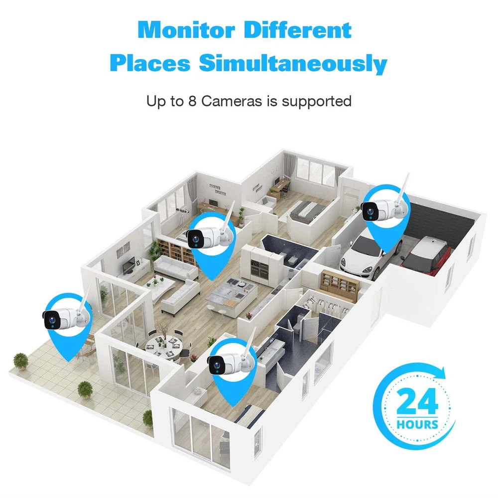 TOGUARD 1080P Wireless Security Camera System with 12 inch LCD Monitor, 8CH NVR 4Pcs WiFi Outdoor Home Surveillance Camera with App Remote, Night Vision, Waterproof, Motion Detection, Email Alert W/ 1TB Hard Drive Free & Fast USA Shipping ✔ Best Quality ✔ Easy Installation TOGUARD Wireless Security Camera System Precautions: 1. W/ 1TB Hard Drive 2. Audio Recording is NOT Supported 3. Wireless means the cameras can automatically connect to the NVR monitor wirelessly. Cameras and NVR require power supply all the time. (Not cover Battery) Observing What You Love From Every Angle and Keep Your House Under Control. NVR Kit supports sync-playback, video backup, motion detection, email alert. Night Vision, Waterproof and 1080P image sensor allow you to view more clear and stunning picture and video at night even in rainy day. Smart security for your home. Save videos automatically and you can watch videos on your phone, laptop and computer at any time. Also you can share the interesting things with your other family members and friends. Key Words: 【 All-in-One and Plug & Play 】TOGUARD wireless camera system features a 12" full HD 1080P NVR monitor (Not Touch Screen). The cameras and NVR monitor are auto-paired during the factory setting. Just need to charge the cameras and NVR monitor with Power Supply provided for 24/ 7 surveillance purposes. (Wireless means wireless connection, but also need to plug-in power supply all the time) Perfect for villa, home, office, shop, hotel, warehouse, school, business or elsewhere. 【 Remote Viewing on smart devices 】Connect the NVR Monitor to home router via Ethernet cable provided and download app “EseeCloud ” into your Phone, Pad, or PC. You can remote access simultaneously on smart devices at any time and anywhere. (Note:This TOGUARD wireless camera system does not support audio recording.) 【 Motion Detection and Email Alert 】TOGUARD wireless camera system provide a sensitive choice of Motion Detection for different needs. Smart notifications with email/ snapshot alerts will be pushed to your smart phone via email or IOS/ Android App when motion is detected. Customize your own detection plan and zone for each camera. Alarm Ringing does not support yet. Note: The Email Alert function needs to turn on before it works. 【 IP66 Weatherproof & Outdoor Night Vision 】TOGUARD wifi security camera is rated with IP66, the working temperature ranges from -4°F to 122°F (-20℃ to 50℃) made with dust tight and waterproof and cover with durable housing. It is vandal proof and can work well under harsh weather, even in the storm and snowy weather. Featuring 3.6mm LEDs with IR-CUT function support up to 20m/65ft Night Vision. Best choice for your outdoor home security. 【 More functions and details 】 TOGUARD wireless camera system support up to 8 cameras. It can be also used in no Internet area(connect directly via NVR system, but can not use Remote view). Extending wireless signal range by IP Camera if you use in a long distance.24 hours 30 days reliable video recording for 1TB HDD. For more function,please read user manual. Surveillance System Packing List: 1 x 8CH 12inch 1080P Wireless Network Video Recorder&Monitor(Wireless NVR Monitor) 4 x 1080P IP Cameras with 5DB Extension Antenna 4 x Power Supply (12V/1A) Power Adapters for Security Cameras 1 x Power Supply (12V/2A) for NVR recorder 4 x Screw for Bullet Cameras' Installation 1 x Screw for Hard Drive's Installation 1 x Ethernet Cable 1 x USB Mouse 1 x User Manual Reference: 1TB Hard Drive ( included) When the hard drive is full, it will be overwritten automatically. True Plug & Play and Auto-Pair The IP cameras have been paired to the NVR monitor. Actual Plug and Play. Just need to connect the NVR monitor and IP cameras with Power Supply. (Cameras are not cover battery) The NVR monitor and IP cameras need to charge all the time to get electricity for 24/7 surveillance purposes. Wireless means that there is no cable between cameras and NVR monitor, but Cameras and NVR require power supply all the time. Local and Remote View Local Viewing: No Network Needed. Just connect the wireless surveillance camera system to the monitor via HDMI and enjoy multiple-cam views on one screen. Remote Viewing: Connect the NVR to Network . Download the “EseeCloud” on your smart phone (Android & IOS system), Or download the “EseeCloud” PC client on PC(advise IE Browser). Create an account and connect the NVR device to view live and record videos. Easy Remote Access TOGUARD Wireless Security Camera System support different devices on remote viewing.(It need to connect to WIFI) Download app “EseeCloud ” into your Phone, Pad, or PC. You can remote access simultaneously on smart devices at any time, anywhere. WiFi Range Extend & Repeater Set up TOGUARD IP Camera can work as signal transmitter to help strengthen the poor signal camera that caused by long range installed or physical obstacles such as walls. Repeater is also supported. Infrared Clear Day Night Vision Featuring 3.6mm LEDs with IR-CUT function, 110° viewing angle, 50ft Night Vision range. The camera's infrared mode is automatically activated in low lighting conditions. It can clearly monitor everything even at night. Motion Detection and Email Alert Customize your own detection zone for each camera exactly to your needs. When motion is detected, smart notifications with email/ snapshot alerts will be pushed to your phone via iPhone/ Android App or Email. The motion detection function of the wireless security camera system uses intelligent algorithms to minimize false alarms. Sensitive of motion detection can be chosen for different need. Wireless Surveillance System Provides for 24/ 7 Recording TOGUARD Security Camera makes your life safe and monitor what matters most. TOGUARD Security Camera System supports wireless / wired connection. When the wireless signal cannot be covered, you can set up a wired network to transmit video. (If you