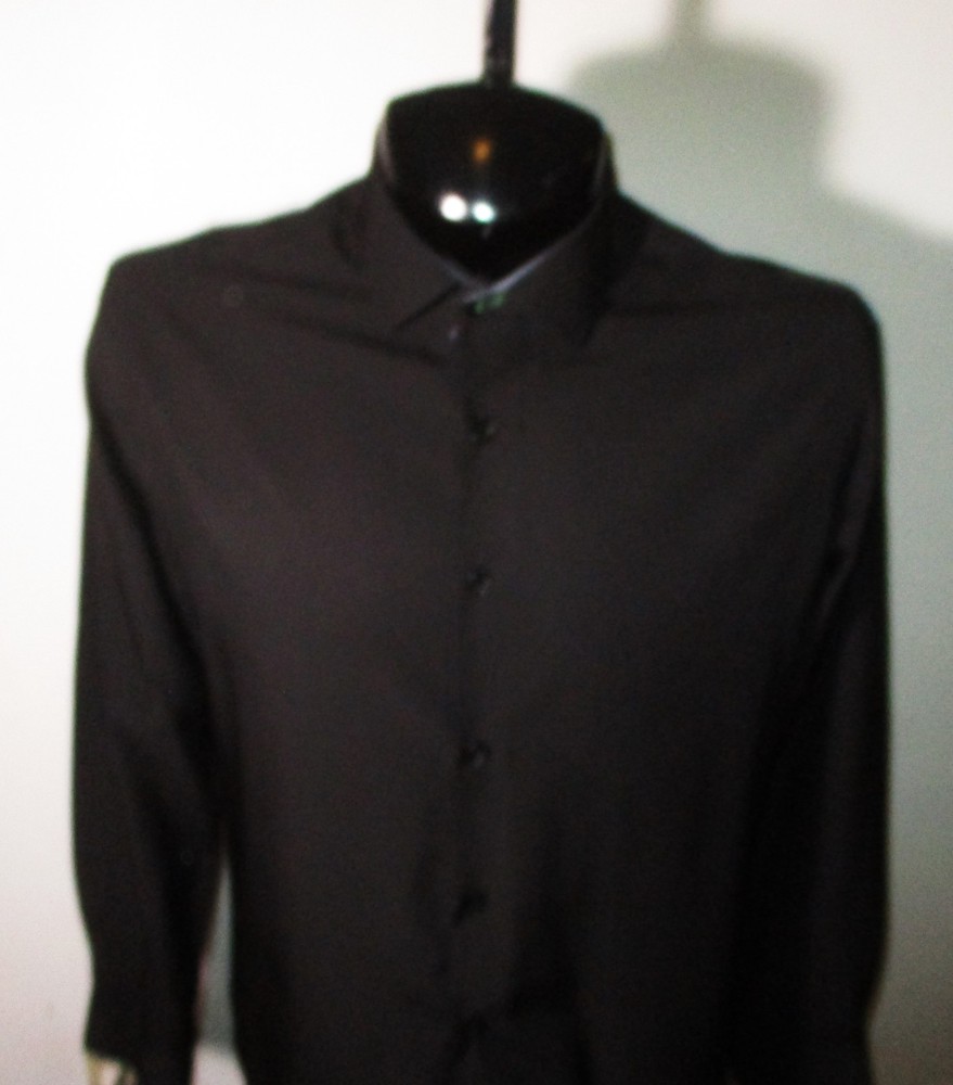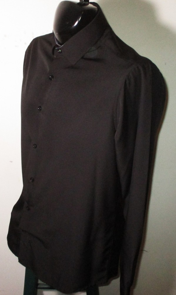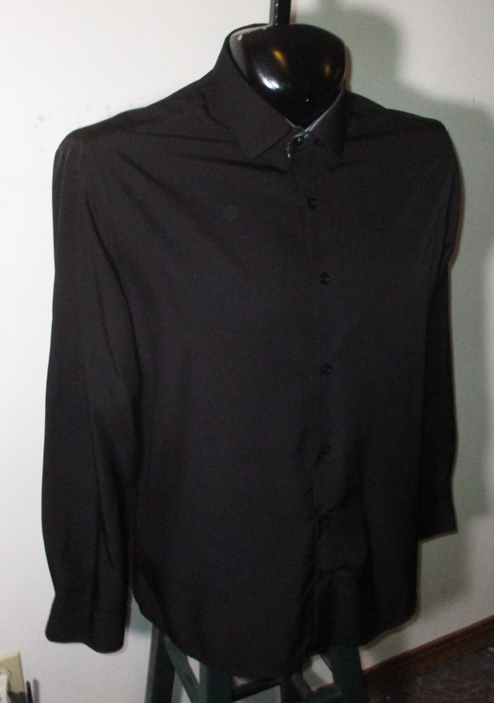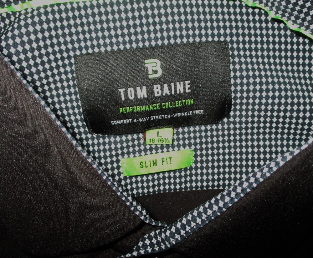 See my EBAY STORE at “SAMTPC53” to view 100’s more of my Men's SHIRTS!!! Combine Shipping: (on multiple items you pay full price on heaviest item first and then HALF PRICE shipping on ALL other items. Men's Long Sleeve Dress Shirt. Brand: TOM BAINE. Description: men's rayon stretch TOM BAINE long sleeve dress shirt, button front, button cuffs, see pics. Color: Black. Size: L, 16/16.5 (please see measurements). Measurements: 22" armpit to armpit, 30 " shoulder to hem, 19.5" insleeve. Material: 95% Rayon, 5% Spandex. Condition: Excellent condition, NEW.