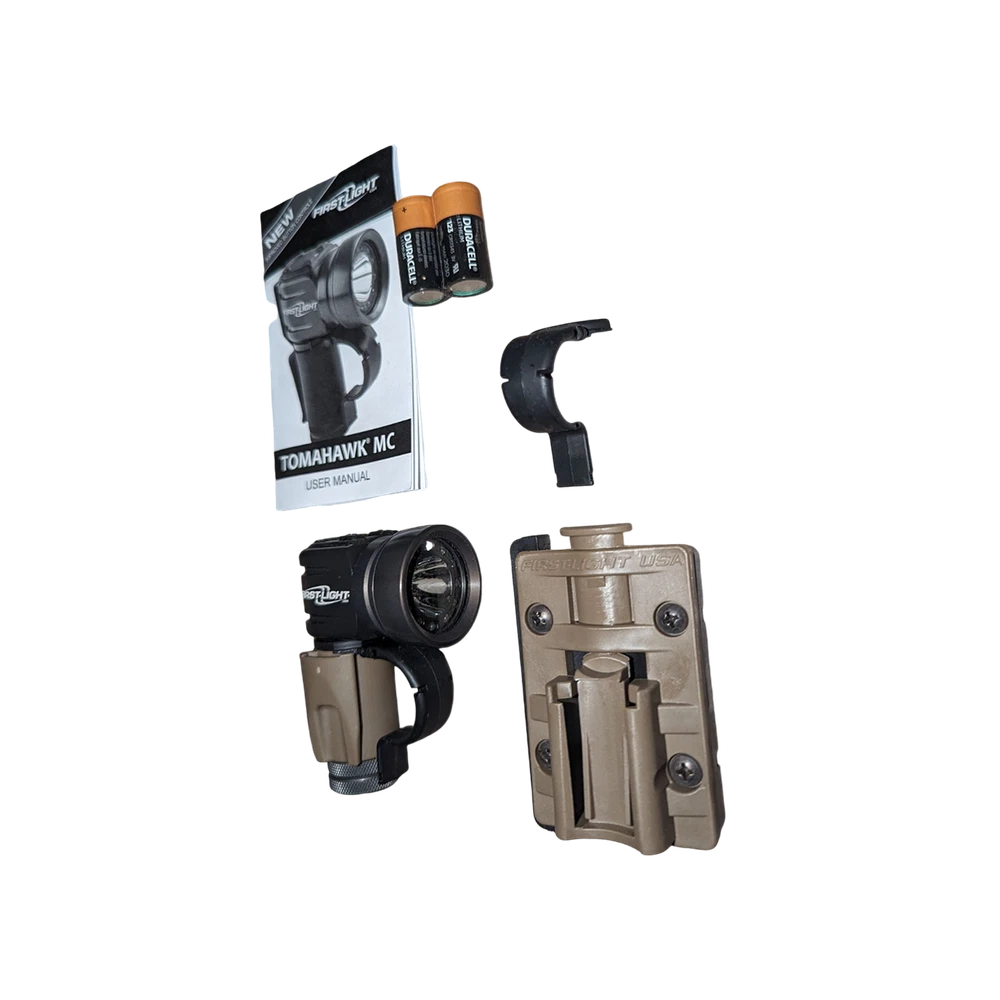 Number of LEDs: 14 Item Weight: 4.4 oz Model: FirstLight TOMAHAWK MC Brand: Firstlight Country/Region of Manufacture: United States Type: Flashlight MPN: 999123 Number of Batteries: 2 Item Height: 3.9 Features: Batteries Included, Clip On, Handheld, Water Resistance, Breakaway Finger loop, Varying degrees of brightness on all output options, Lockout Mode: Prevents unintentional deployment of the light, Double-Click for Color while in Lockout Mode, Lifetime Warranty Power Source: Battery Battery Technology: CR123 Color: Multicolor Lumens: 500 Item Length: 2 Number of Lights: 1-3 Lighting Technology: LED Voltage: 6 Operating Range: 220 m IP Rating: IPX4 Item Width: 1.25 Operating Time: 60 hours Warranty: Lifetime Material: Aluminum