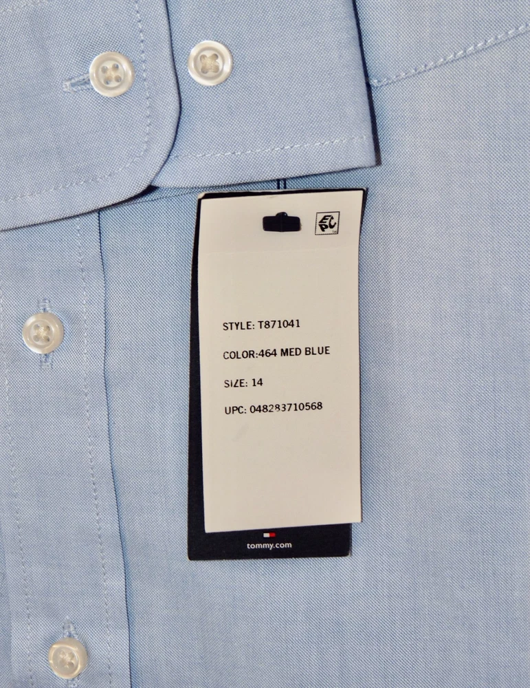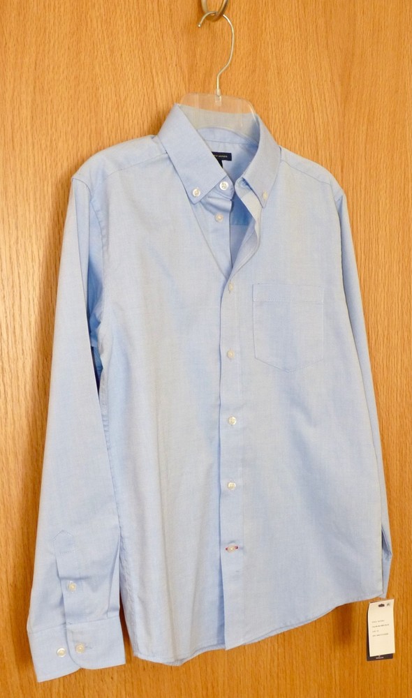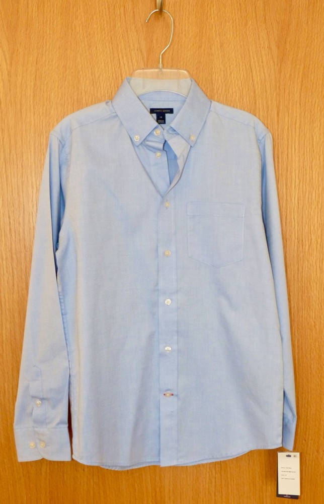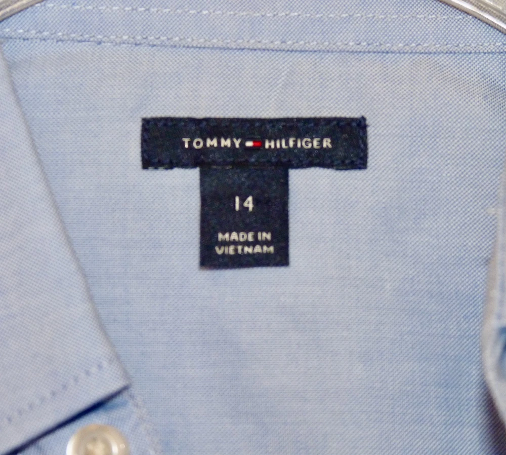 This great NEW shirt, boy s’ size 14, is from Tommy Hilfiger. It is the “ Boys’ Oxford Long Sleeve Dress Shirt, Collared Button-Down with Chest Pocket, Regular Fit” and the fabric is an easy-care cotton/poly blend. Here’s the catalog description: A CLASSIC STAPLE: Featuring a button-down style, collar, and a stylish front chest pocket, our Oxford Long Sleeve Dress Shirt is a classic boys' wardrobe staple that has been especially tailored with a rich cotton blend for an exceptional fit. PREMIUM QUALITY: We use high-quality materials in all our kids' clothing to ensure maximum comfort, longevity, and lasting power. Made from 60% Cotton and 40% Polyester. SIZE GUIDE: Fits true to size. CARE INSTRUCTIONS: Machine wash. TOMMY HILFIGER: As one of the world’s most recognized premium designer lifestyle brands and internationally recognized for celebrating the essence of classic American cool style featuring preppy with a twist, Tommy Hilfiger is focused on designing and marketing high-quality apparel and is dedicated to the living spirit of the American dream. Measurements for this size 14 are: chest-35”, length-25”, sleeve length-29”. This classic shirt retails for $35; I’m happy to answer any questions.
