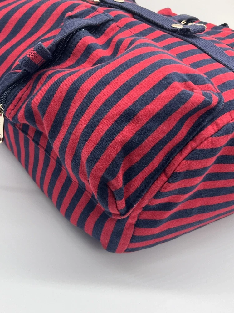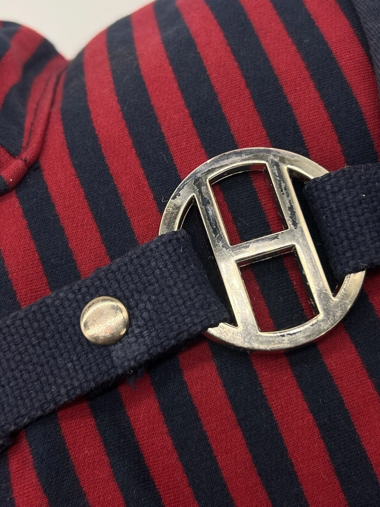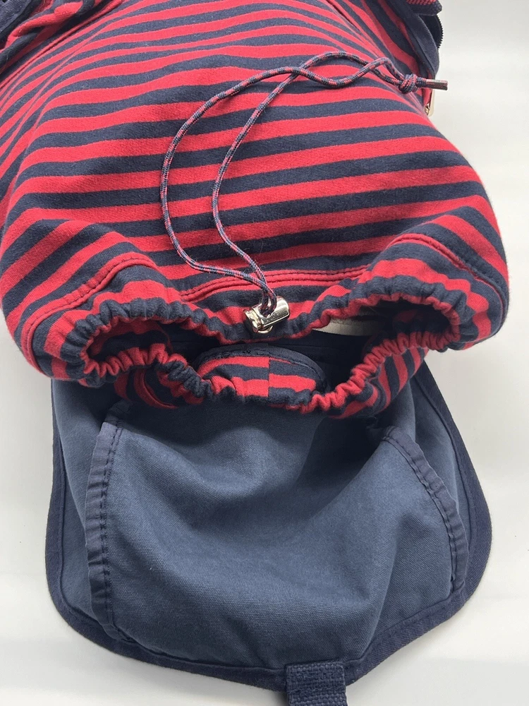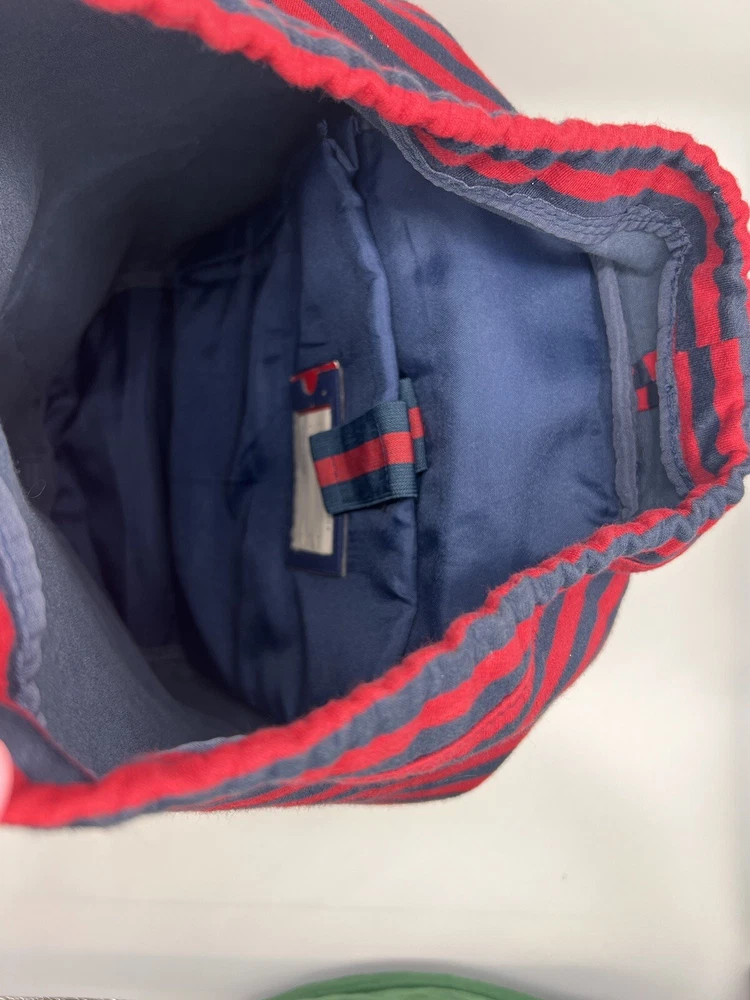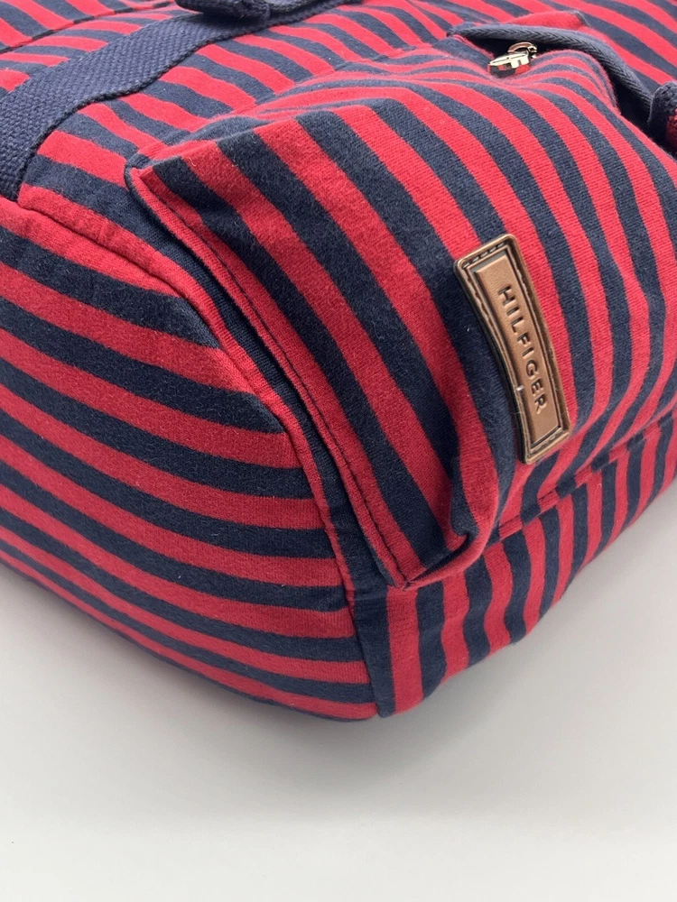 TOMMY HILFIGER Canvas Backpack Red Blue Laptop Drawstring Travel Bag Vtg EUC
