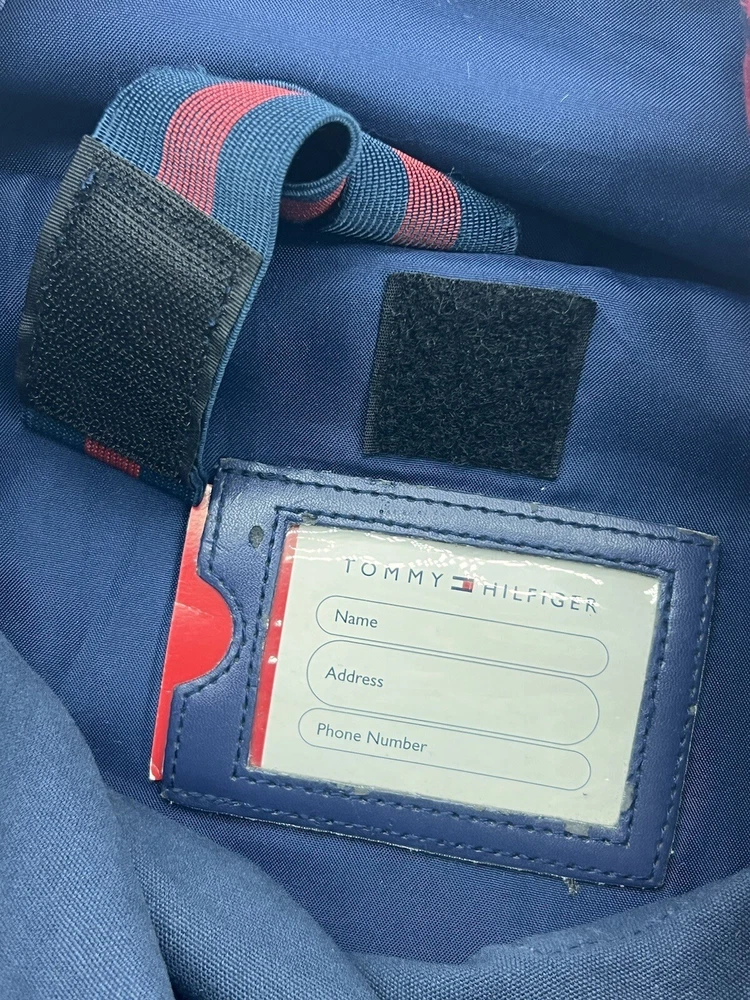 This TOMMY HILFIGER backpack bag is a must-have for anyone looking for a stylish and functional accessory. Made of durable polyester, nylon, and canvas materials, this large-sized bag features a drawstring and snap closure, with adjustable straps for a comfortable fit. The bag comes in a striking blue and red striped pattern, with a Y2K, 90s, retro, and preppy theme that is perfect for travel, casual outings, or workwear. The bag has several features, including outer pockets, laptop sleeve/protection, lightweight and packable design, and a lined interior with silver tone hardware material. It also has a laptop pocket and is suitable for unisex adults. Whether you're looking for a vintage or modern backpack, this TOMMY HILFIGER bag is a perfect choice. Note: Item is clean and measures appropriately 18” H x 14.5” W x 5.5”D. There is a small nick on the ID window and some scratches/ wear on the hardwear; shown in photos! Thank you for stopping by!