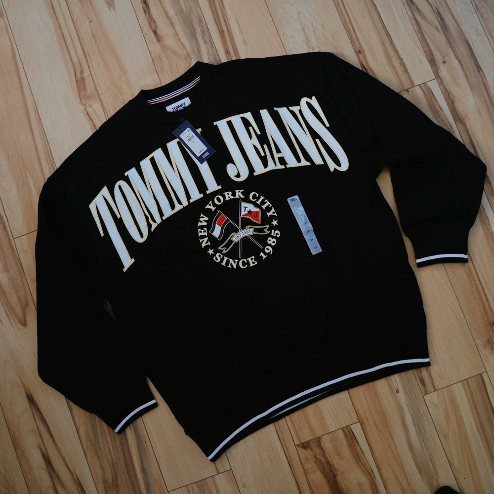 The Tommy Hilfiger Men's Crewneck Sweatshirt in black is a stylish and versatile pullover perfect for any man's wardrobe. With its timeless design and high-quality construction, this sweatshirt is ideal for casual wear and can be easily paired with jeans or shorts for a classic, laid-back look. The iconic Tommy Hilfiger branding adds a touch of sophistication to this comfortable and classic piece of clothing.
