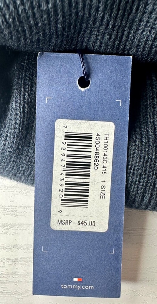 TOMMY HILFIGER Knit Hat Beanie Navy Blue w Red Logo Winter Mens One Size TH100143C NEW With Tags!!! Please See All Pictures. TOMMY HILFIGER 1-Pair One Size Beanie Hat MEN’S Size Available: One Size PATTERN: Solid with Logo COLOR : Navy Blue with Red Logo STYLE: # TH100143C-415 RETAIL PRICE: $45.00 + Tax Description: 100% Acrylic Exclusive Of Decoration Hand Wash Cold Imported