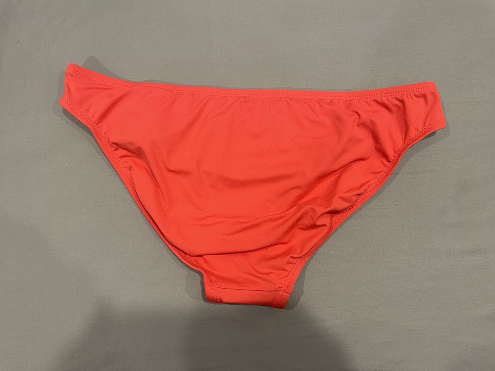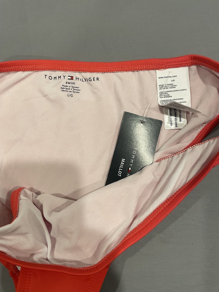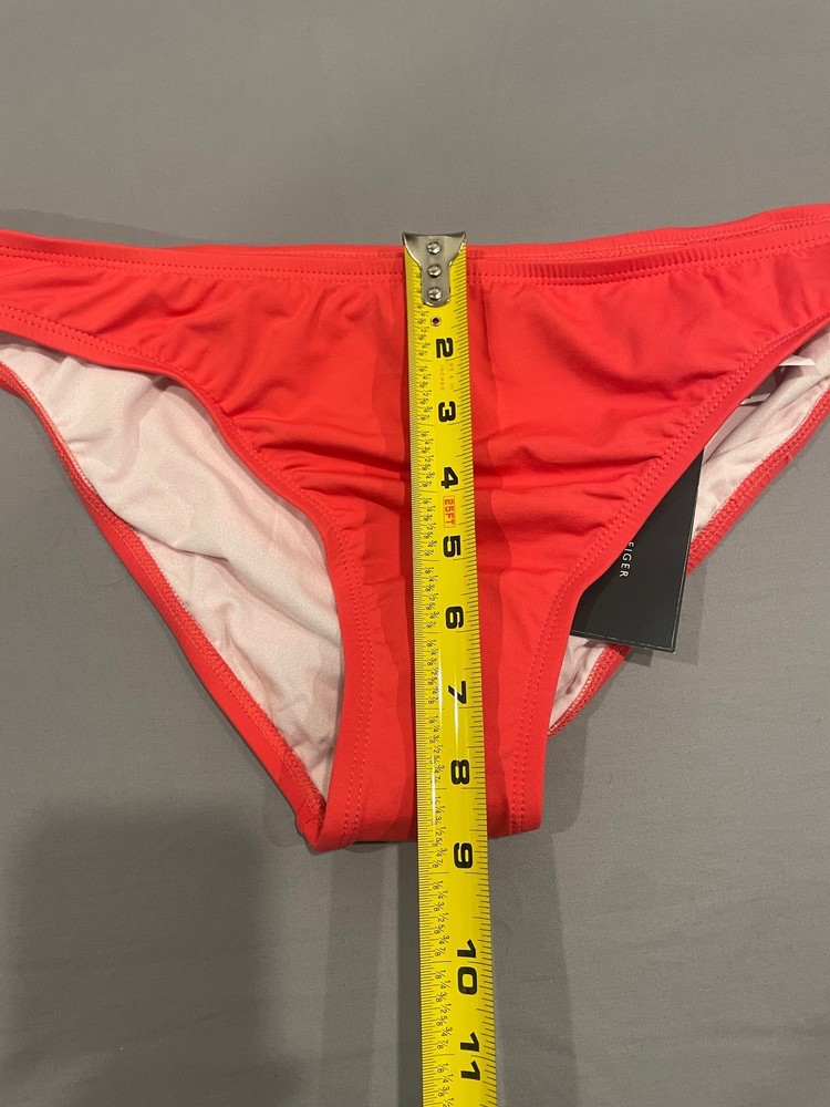 The Tommy Hilfiger Women's Bikini Swim Bottom in size L is a stylish and comfortable choice for beach or poolside lounging. Made of 82% Nylon and 18% Spandex, it offers a stretchy and adjustable fit. The solid orange color adds a vibrant pop to your swimwear collection, while the brand's reputation for quality ensures durability. Perfect for outdoor fun and leisure, this bikini bottom is machine washable for easy care and maintenance. Made in Taiwan, it embodies a beachy, pool party vibe that will have you looking and feeling great during your time in the water. See pics for measurements and quality.