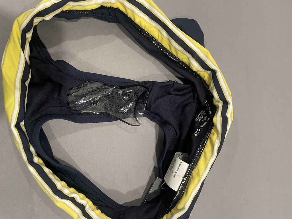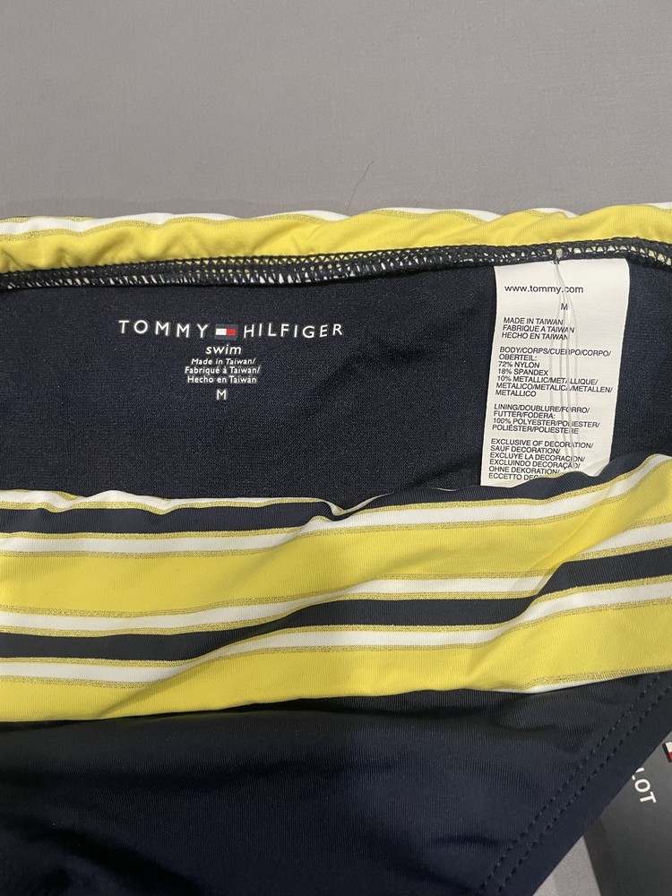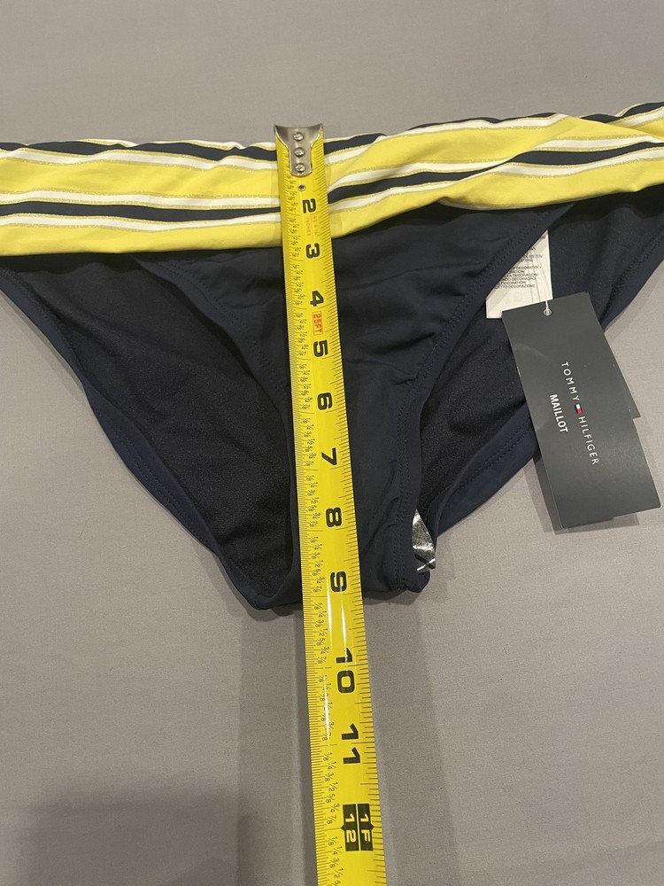 This Tommy Hilfiger women's bikini swim bottom in size M features a stylish striped pattern and is made of 82% nylon and 18% spandex for a comfortable fit. The design includes adjustable straps for personalized comfort and is machine washable for easy care. Perfect for pool parties, beach outings, outdoor activities, and swimming, this swim bottom offers a stretchy and adjustable fit, making it a versatile and practical choice for any water activities. Made in Taiwan, this Tommy Hilfiger bikini bottom combines style and functionality for any woman looking to elevate her swimwear collection. See pictures for quality and measurements.
