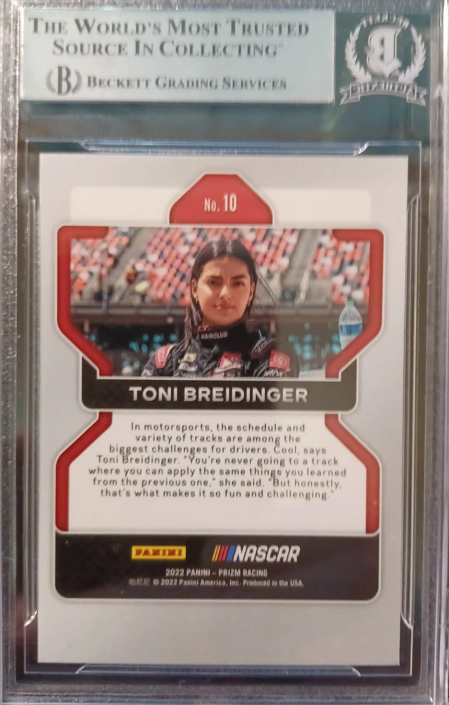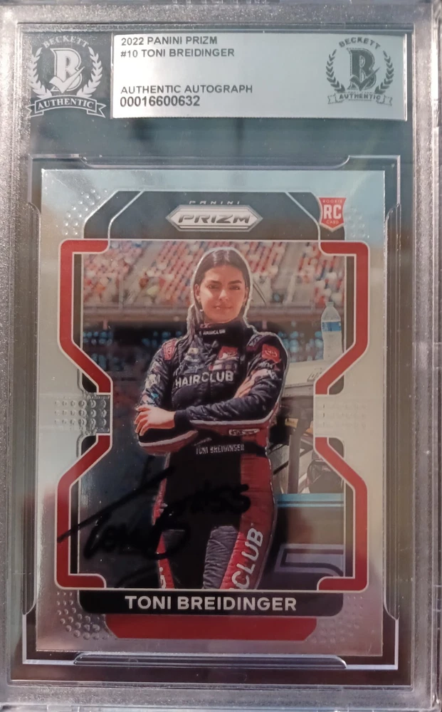 TONI BREIDINGER 2022 PANINI PRIZM RACING SILVER SIGNED BECKETT BAS CERTIFIED