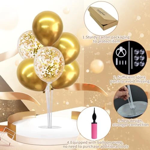 Return Policy Fast Delivery Trusted seller TONIFUL Birthday Decoration Balloon Centerpieces for Table,Gold Balloon Stand Kit for 2024 Graduation Engagement 50th 60th 70th 80th 90th Birthday Retirement Anniversary Decorations Product Description Package Includs: The balloon stand kit includes 4 reusable balloon centerpiece table decorations and 12 inch 32 pcs Latex Balloons(20 gold balloons,12 gold confetti balloons),glue point dots,balloon pump,balloon clips,and tie tool.You don’t need to waste money to buy balloons Stand Holder Size: The balloon stand for table made of reusable plastic.Approximately up to 26.6 inches in height (the height of the balloon stand); Sticks: 1 x approximately 26.6 inches long,3 x approximately 22.6 inches long,3 x approximately 13.5 inches long. Base diameter: approximately 7 inches Easy Assembly: The balloon stands for table set comes with all necessary parts and tools and printing instructions,requiring no extra tools for a seamless setup. Visual guides and assembly videos are provided for a quick and easy process. In just a few minutes,attach the balloons to the stand and create stunning table decorations Widely Occasions: Perfect for balloon centerpieces for table,birthday decorations,weddings,2024 graduations,holidays,Christmas parties,2024 New Year's Eve,Father's Day,Mother's Day,Valentine's Day,Retirement,Easter,Independence Day,Halloween,Thanksgiving,and more special events. Brighten up your tables with floating decorations,no helium tanks required Please Note: Given the varying conditions of storage and usage,it is recommended to avoid inflating the balloon to its full 12" capacity to minimize the risk of it bursting or popping due to overinflation. A moderate size of 10-11" is advised for safety and appearance Shipping Returns Payment Shipping Shipping is FREE to all addresses other than APO/PO boxes in the lower 48 states. All our stock ships from US-based warehouses. Shipped via USPS or UPS (depending on location and package weight) Unless stated otherwise, all orders will ship within 24-72 hours of your payment being processed. Check our feedback to see the great reviews of FAST shipping we offer. Returns Seller does not accept returns Payment We currently accept payment via eBay managed payments only. Once payment is cleared, we will dispatch your shipment within 1-3 business days. Please refer to the "Shipping" tab for more information regarding shipping speed to your destination.