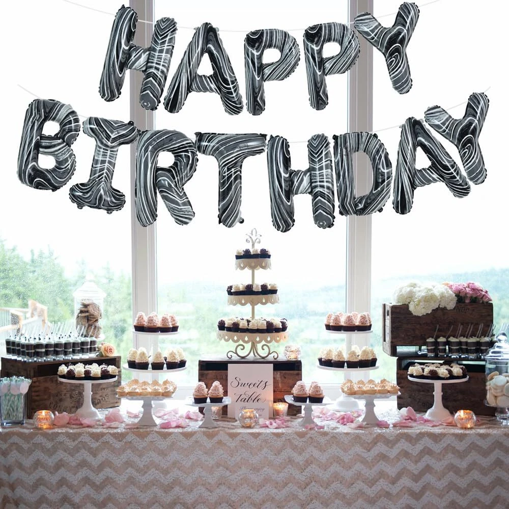 TONIFUL Black Marble Happy Birthday Balloons Banner,16 Inch Mylar Foil Letters Birthday Sign Bunting for Girls Boys Kids & Adults Birthday Decorations and Party Supplies Happy Birthday Balloons-Happy Birthday Banner Foil Letters Balloons for Party Decorations,Birthday Decorations. ππππππππππππππππππππ PRODUCT DETAILS: Auto-Seal Balloon Design SIZE:16" for each letter balloons.1 pcs Happy Birthday Balloons MATERIAL:Good quality aluminum foil balloons A GREAT BIRTHDAY PARTY DECORATION Bold, shiny, and the great addition to birthdays for boys, girls, children, and adults, these happy birthday balloons will shine both indoors and out. TopNotch Service:οΈ TOUIFUL is committed to making you 100% satisfied, we offer: If you have any questions about your purchase, please let us know and we will do our best to help you. 100% quality assurance.30 days are not satisfied with the refund. Add TOUIFUL decorations to your wish list to learn about our latest products and promotions. πWe wish you spend a happy and memorable birthday party!!! PACKACKAGE INCLUDES-- Totally 15 Pcs "Happy Birthday" letter balloons with 1pcs straw and 1 pcs ribbon. Each letter balloon measurement about 16 Inch. MATERIAL-- Made of good quality aluminum foil balloons,it is safe, self sealing helps the balloons maintains for nearly 1 week without leaking or losing air. WIDELY APPLICATION-- Use for birthday, birthday party, wedding, baby shower,outdoor party, home party, celebrations and other on-site decoration. SUITABLE FOR THE CROWD-- Suitable for decorating the babies, kids, adults birthday party with this lovely 'HAPPY BIRTHDAY' Foil letter balloon banner. GREAT PARTY DECORATION-- Hang these foil happy birthday balloons banner in the kitchen, living room, or party room and show the birthday boy or girl how much you care! Shipping from the USA All of our products are shipped from the USA, ensuring quick delivery to your destination. Payment We offer the following payment methods: PayPal, credit card, bank transfer, and eBay's secure payment system. Free Shipping & Free Returns Shipping within the USA is FREE. Additionally, any return is absolutely free for you. Risk-Free Purchase You have the option to return an item within 30 days without any justification. We cover the return shipping costs! Fast Shipping We ship immediately upon receipt of payment. Generally, the package is delivered within 2-3 days in the USA. If it takes longer, we will contact you. Quality and Costs Made in Europe, USA, China No customs fees or additional charges Total satisfaction guarantee Invoice with declared VAT available upon request in .pdf format Feedback Your feedback is very important to us. After you pay for your purchase, you will automatically receive positive feedback from us.