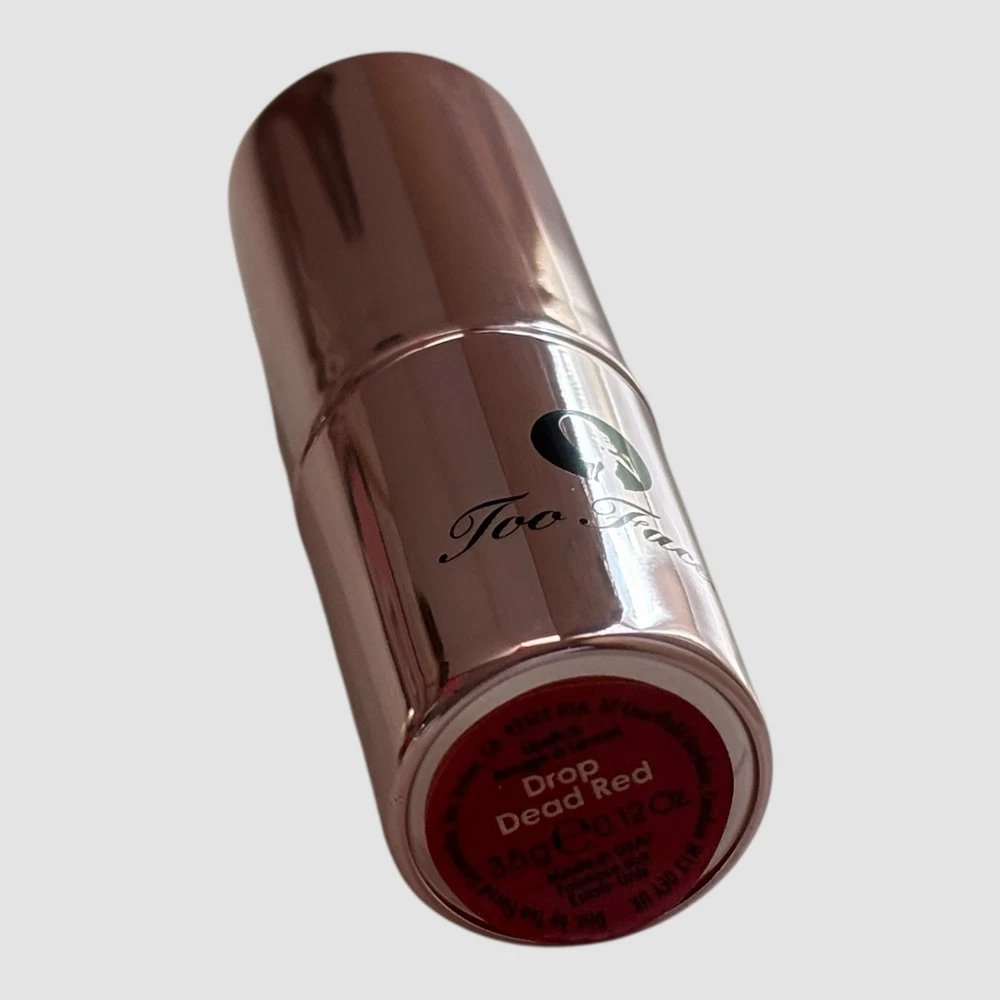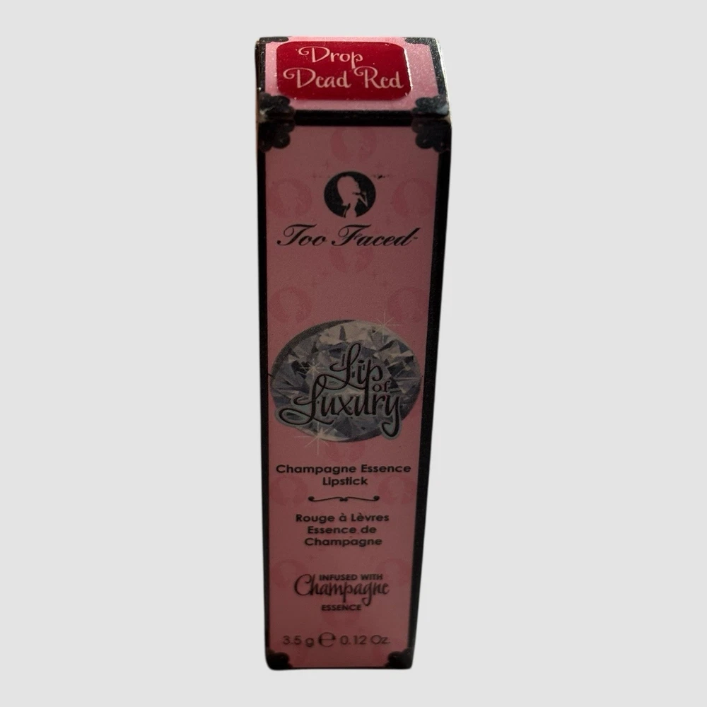 This offering is for: 1 (one) Retired/Discontinued 2005 TOO FACED Lip of Luxury Champagne Essence Infused Lipstick, shade: Drop Dead Red - 3.5 g / 0.12 oz (full size, boxed) * New - Box May Have Minor Wear. * To keep the shipping cost low, this item will ship in a bubble mailer within 3-5 business days (Business days Mon-Fri) with USPS GROUND ADVANTAGE. * Expedited Shipping Option available at Checkout - Choose USPS Priority Mail Express shipping. Brand Description: Indulge yourself in pure luxury with "Lip of Luxury" champagne-infused line smoothing lipstick! Drenched in shea butter rich color and diamond shine our exclusive formula smoothes out fine lines and creases while it pampers your lips with a fizzy moisture surge of pure champagne essences. This billion-dollar blend of pure pigments has serious staying power and feels as soft as satin on the lips. Pucker up and smile for the paparazzi you're one of the beautiful people now! Keep Lip of Luxury 'move-proof' by lining lips with Too Faced's Borderline Anti-Feathering Lip Pencil. Remember to blot girls...blotting is the oldest trick in glam history to stain lips. Simply blot and re-apply. Sandwich lip gloss between two layers of Lip of Luxury for a three-dimensional kisser. Apply Lip Injection over your pucker to pop your pout! Shea Butter - Can you say 'moisture rich? Pink Champagne - A taste of luxury with every glide. A-List Must Have - Glamorous 20-carat diamond accent and amazing shades make them Hollywood essentials. Long-Wearing - Velvety formula offers long-lasting pigment without drying. This is the future of lipstick! Paraben Free - Let's kiss! The texture is sinful, he'll never complain! Lipstick Ingredients: Polyglyceryl-2 Triisostearate, Pentaerythrityl Tetraisostearate, Isostearyl Isostearate, Hydrogenated Polyisobutene, Lanolin Oil, Polyethylene, Methyl Hydrogenated Rosinate, Candelilla Cera, Cera Alba, Flavor (Aroma), Butyrospermum Parkii (Shea) Butter, Carthamus Tinctorius (Safflower) Seed Oil,Vitis Vinifera (Grape) Seed Extract, Vitis Vinifera (Grape) Fruit Extract, Limonene, Hexyl Cinnamal, Linalool, Citronellol, Geraniol, Hydroxycitronellal, Eugenol. (+/-): Mica, Titanium Dioxide (CI 77891), Iron Oxides (CI 77491, CI 77492, CI 77499), Blue 1 Lake (CI 42090), Red 30 Lake (CI 73360), Red 33 Lake (CI 17200), Red 7 Lake (CI 15850:1), Red 28 Lake (CI 45410), Carmine (CI 75470), Red 6 (CI 15850), Yellow 5 Lake (CI 19140) Store Policy: Lipstick is 100 percent authentic, Too Faced's exclusive discontinued shade and formula. Vintage lipsticks may not have the original consistency or scent as a recently produced lipstick. This is to be expected from age with a vintage product. No expiration date indicated however, vintage discontinued beauty products are usually past the use-by date and are considered expired. Sold as is, as found and as pictured. All photos are of the actual lipstick you would be purchasing. Please zoom into the pictures closely and judge the condition, size and content for yourself as our photos are a large portion of our description. Any concerns about condition please address these concerns before purchasing. We aim to provide accurate and honest descriptions. Please read descriptions carefully. We try to describe everything in as much detail as possible, but if you still have questions, please don't hesitate to ask. We will be more than happy to answer your questions and provide you with additional pictures if necessary. Due to export limitations and restrictions, items listed in the Health & Beauty category CANNOT be shipped with eBay International Shipping. * Please check items included in eBay's hazardous, restricted or regulated materials policy. To ensure a positive shopping experience for all our customers, returns ARE accepted . Item(s) can be returned in its original condition for a full refund within 30 days of receipt; however, if an item is damaged or defaced by the customer, or if a new item is returned opened, used or without the tag(s) attached, the refund amount will be reduced by up to 50% as allowable by eBay. By purchasing this item, you are agreeing to this store policy. All returns must go through eBay Returns Center. For any reason that you no longer want to keep your order, please open a return request through eBay to return an item. We will provide a return label free of charge. We abide by eBay’s rules and regulations for returns, if they are met, you will refunded. If you have any further questions about the return policy, please contact an eBay customer service agent . If there is an issue with your purchase, PLEASE do not leave negative feedback before you have contacted us to resolve any issues. If you have any questions or concerns, contact us directly by selecting the ‘CONTACT SELLER’ link. We will work with you quickly to resolve any questions or problems. If any of our national network of stores identify unreasonable, problematic transactions, we reserve the right to block any buyer from future purchases at our discretion. Buy with confidence and rest assured that you are dealing with an experienced store whose #1 priority is customer satisfaction. We list new items continuously, so add us to your favorites and check back often as you never know what you'll find here. Look around in our store as we have a huge selection of fragrances, skincare, makeup and other beauty products. THANK YOU for shopping with us! We want you to be happy with your purchase! PLEASE don't forget to leave positive feedback and give 5 stars in Seller's Rating. The information provided here is strictly to be used for informational purposes only. We do not represent or warrant the product details, ingredients and nutritional value, and any other product information to be accurate or complete. Manufacturers improve or change their product formulas, update labels, and change their packaging. It is recommended that you do not solely rely on the information described in this listing. For any spe
