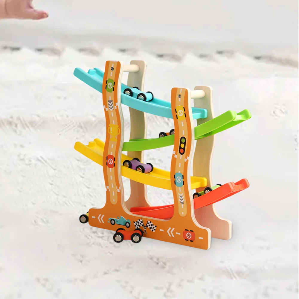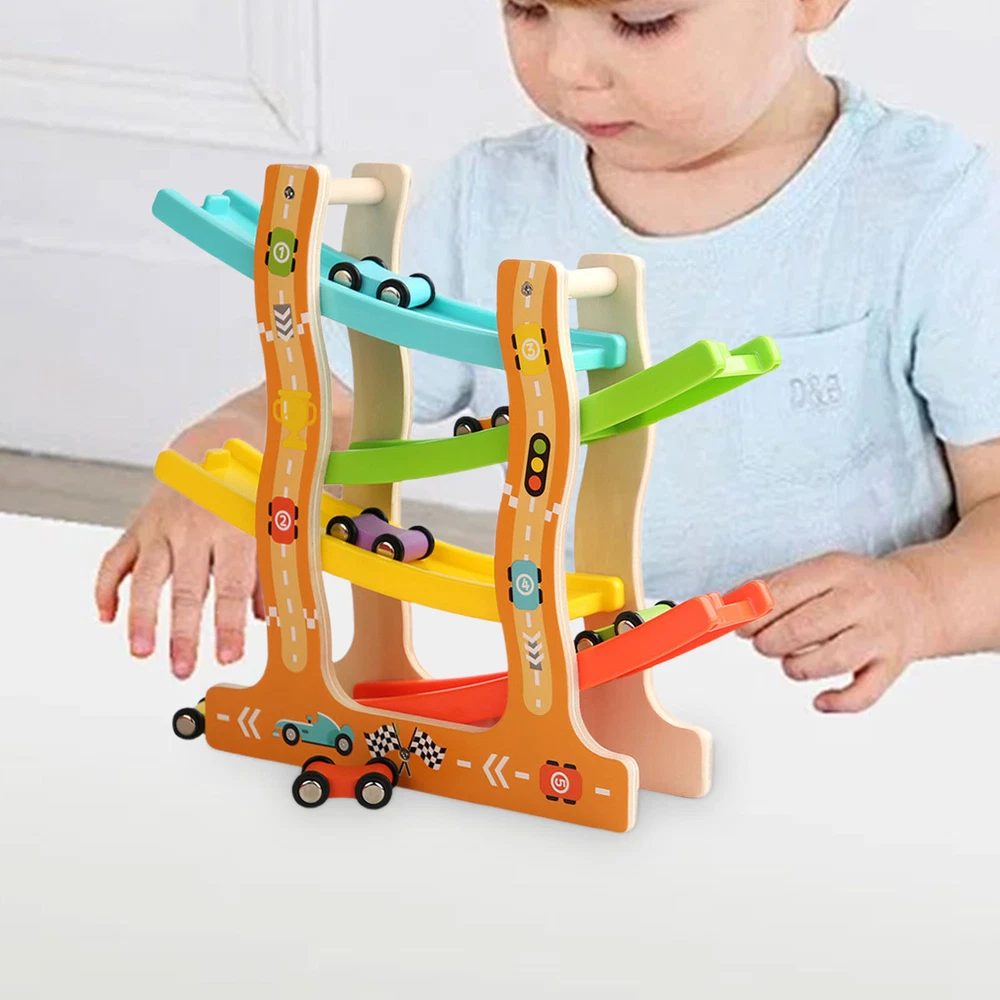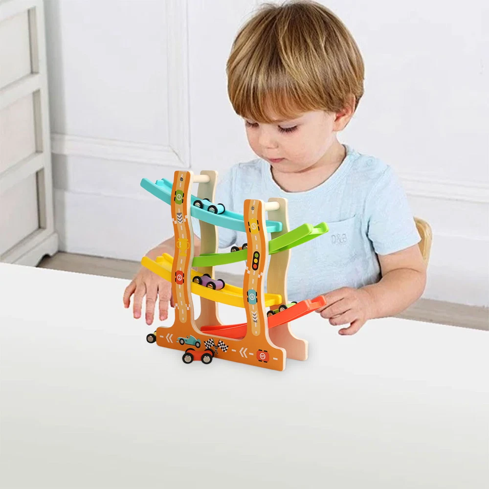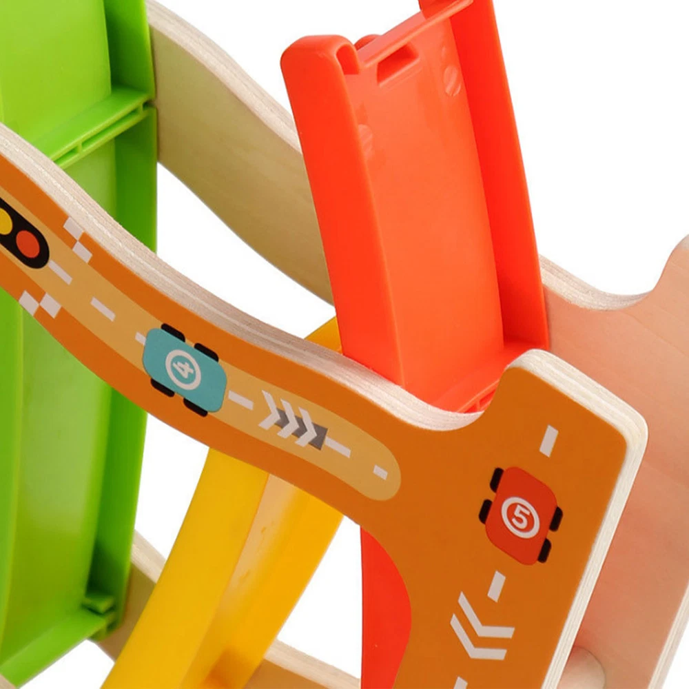 TOP Bright Wooden Race Track Car Ramp Toys For Toddlers With Mini Cars