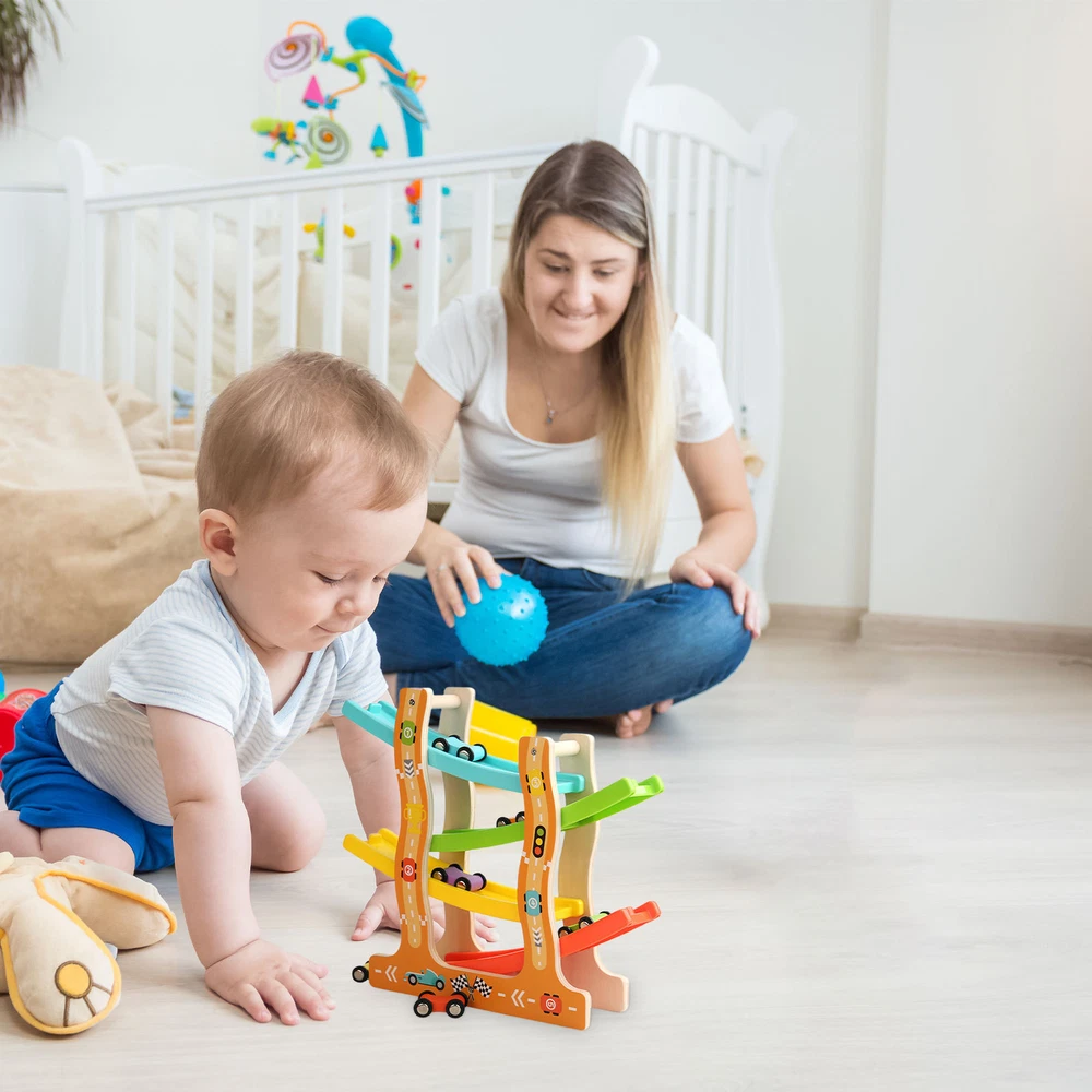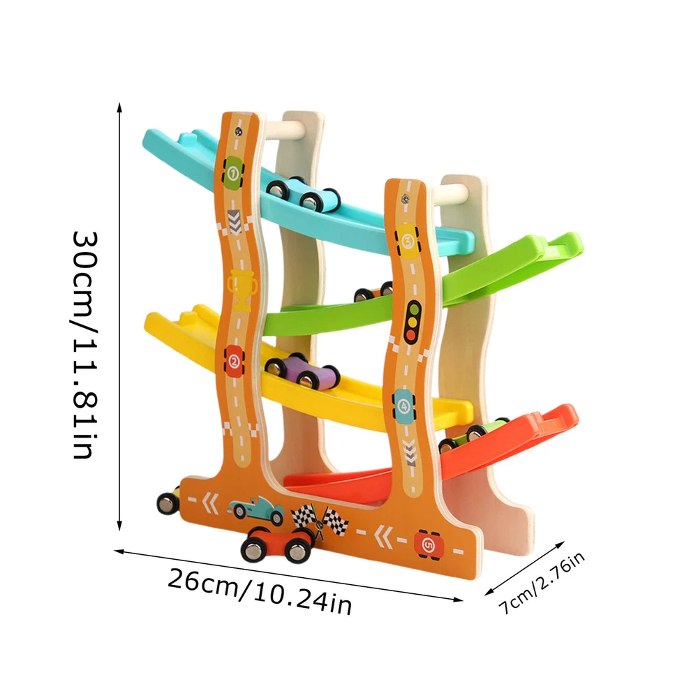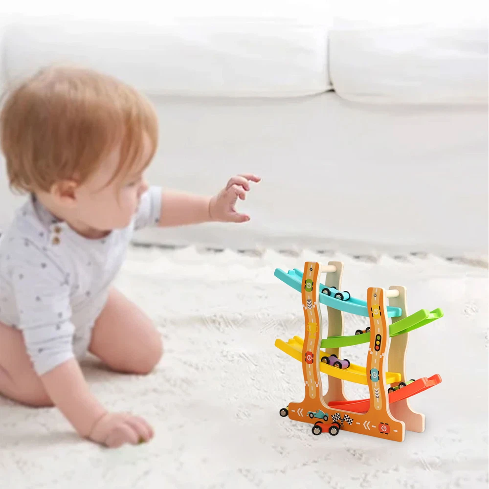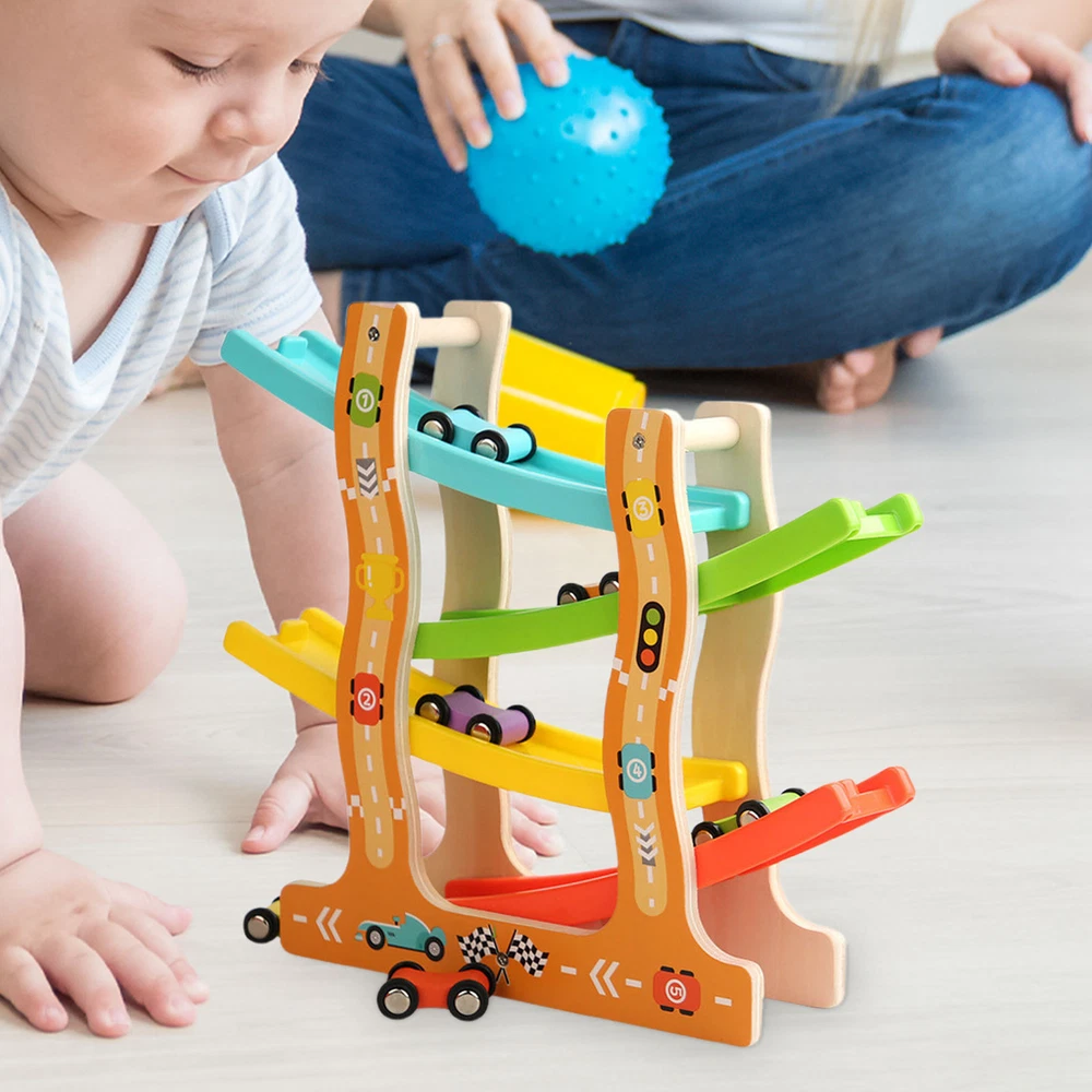 TOP Bright Wooden Race Track Car Ramp Toys For Toddlers With Mini Cars