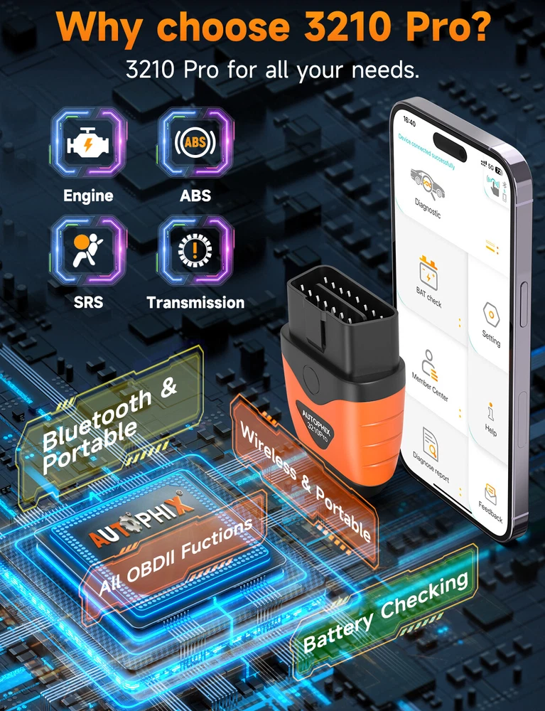 This TOPDON TopScan OBD2 Scanner is a professional diagnostic tool that provides all system diagnostics and OBD2 full functions. It has eight reset functions, including oil reset, EPB reset, throttle adaptation, steering angle reset, BMS reset, DPF regeneration, ABS bleeding, and SRS reset. The tool features bi-directional control, check engine light shut off, freeze frame displays, and multi-language interface. It also supports all OBDII, CAN, and EOBD vehicles and is compatible with Android and iOS devices through the TopScan and TopGuru apps. The package includes a user guide and a 1-year warranty.