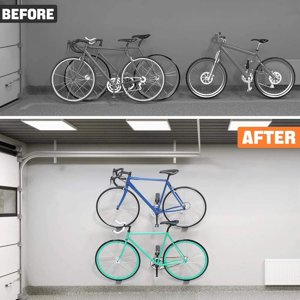 ✨ Key Features Space-Saving Design: Ideal for one-car garages or small spaces, this horizontal bike mount keeps your bikes close to the wall, creating room to walk around and saving floor space. You can even stack bikes one above another Protects Your Bikes from Damage: Unlike racks that hang bikes by the tire rim and put pressure on spokes, this horizontal bike hanger stores bikes by the pedals and tires, protecting rims and spokes while avoiding frame stress Versatile Bike Storage: This pedal wall mount holds bikes by the pedals, allowing it to accommodate various bike sizes, unlike traditional hooks that may be limited by size. Ensure your pedal fits for a secure and damage-free fit Sturdy and Durable Bike Holder: Made from heavy-duty steel with a powder-coated finish, this bike wall mount supports up to 70 lbs, ensuring long-lasting strength and reliability to securely store your bikes Easy and Quick Installation: Includes all necessary hardware and clear instructions, ensuring the pedal holder is securely mounted into wall studs to support the bike’s weight, while the tire holders provide additional stability Shipping Standard Shipping (1–5 business days) ⏱ Handling time: 1–2 business days ❌ No shipping to Alaska/Hawaii, APO/FPO, or U.S. Protectorates No international shipping ↩️ Return Returns accepted within 30 days of purchase Buyer pays return shipping ✅ Refund method: Money back Payment We accept secure payment methods such as PayPal, credit/debit cards, and more Contact Us ❓ If you have any questions, please contact us via eBay. We respond within 24 hours on business days. Thank you for shopping at TEVA SHOP!