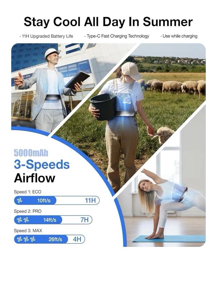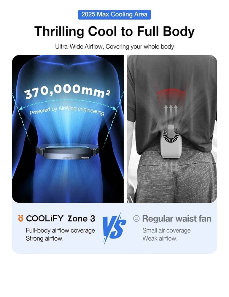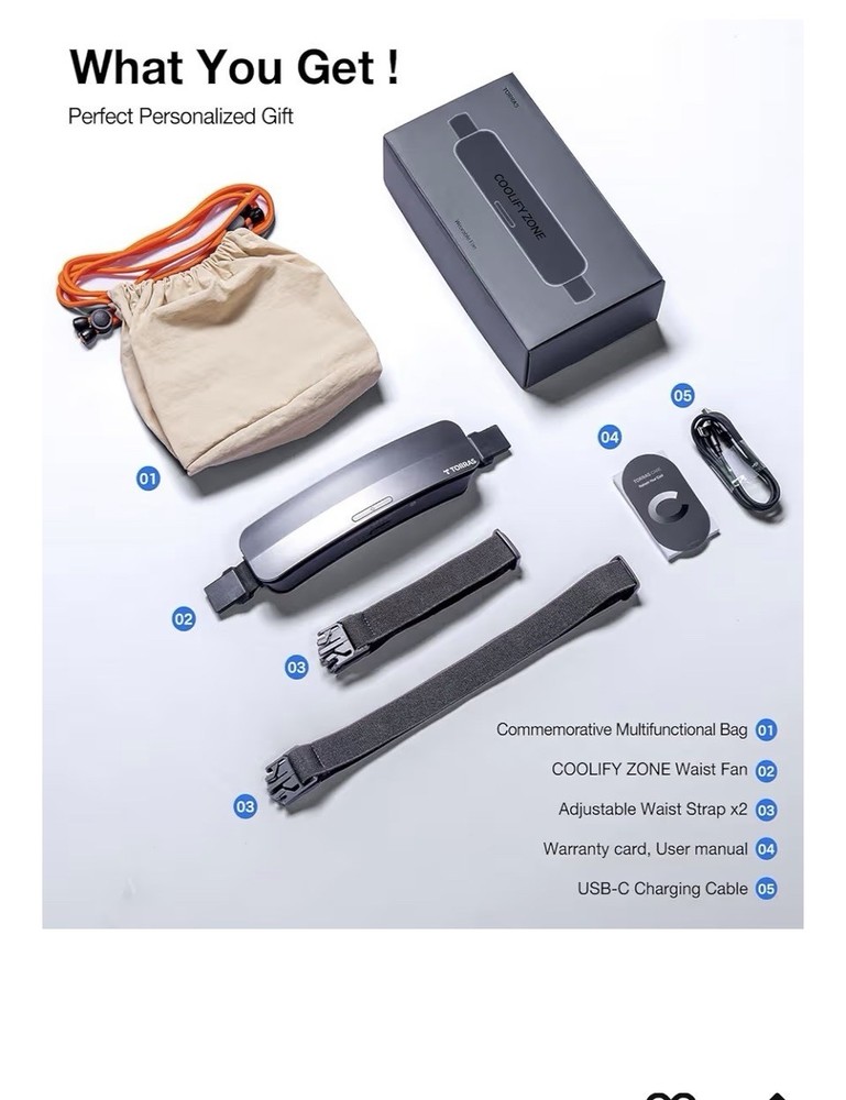 C24 The TORRAS Coolify Zone 3 2025 Portable Waist Fan is a compact, rechargeable wearable fan that provides personal cooling for outdoor activities. With a power source of 2 Lithium Polymer batteries (included), this fan operates at 6.5 watts and features a stylish black design. Its free-standing mounting type and casual style make it suitable for on-the-go use, while its matte finish adds a sleek touch. The TORRAS Coolify Zone 3 2025 is designed for 2025 outdoor enthusiasts looking for a convenient and effective cooling solution.