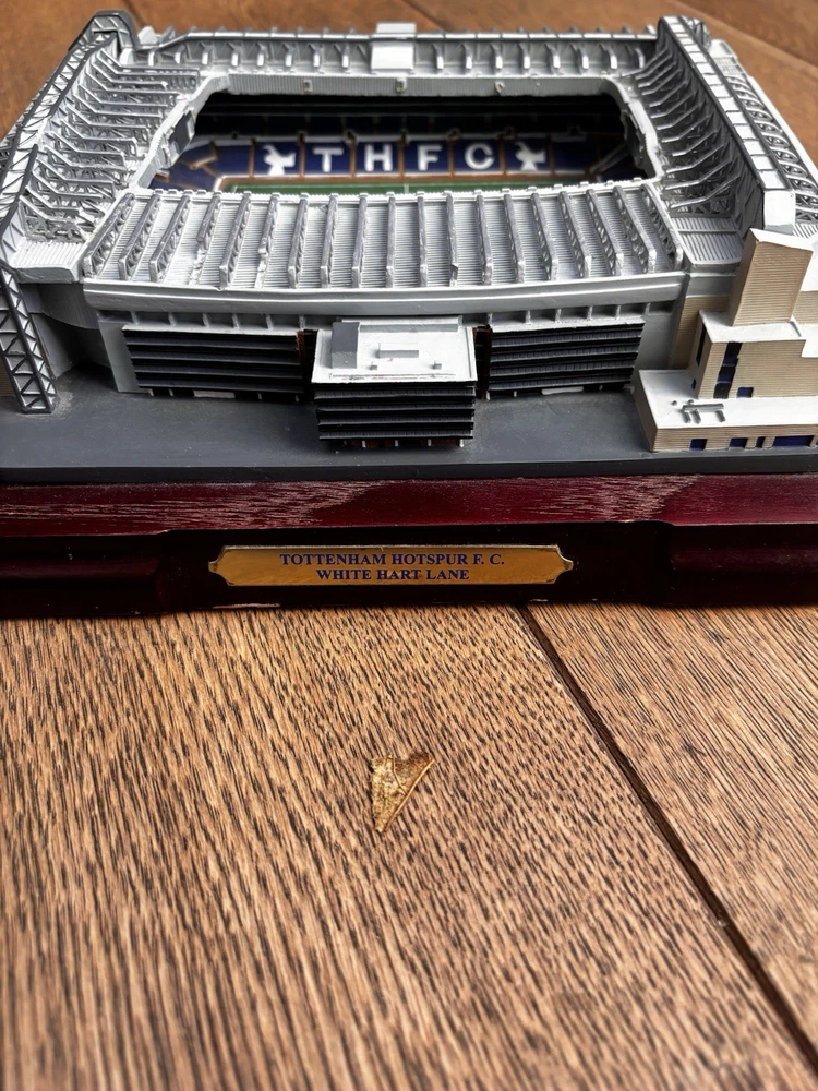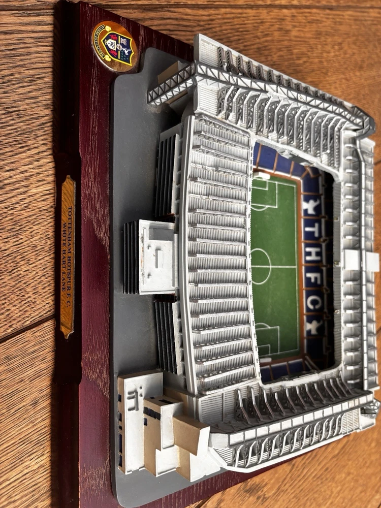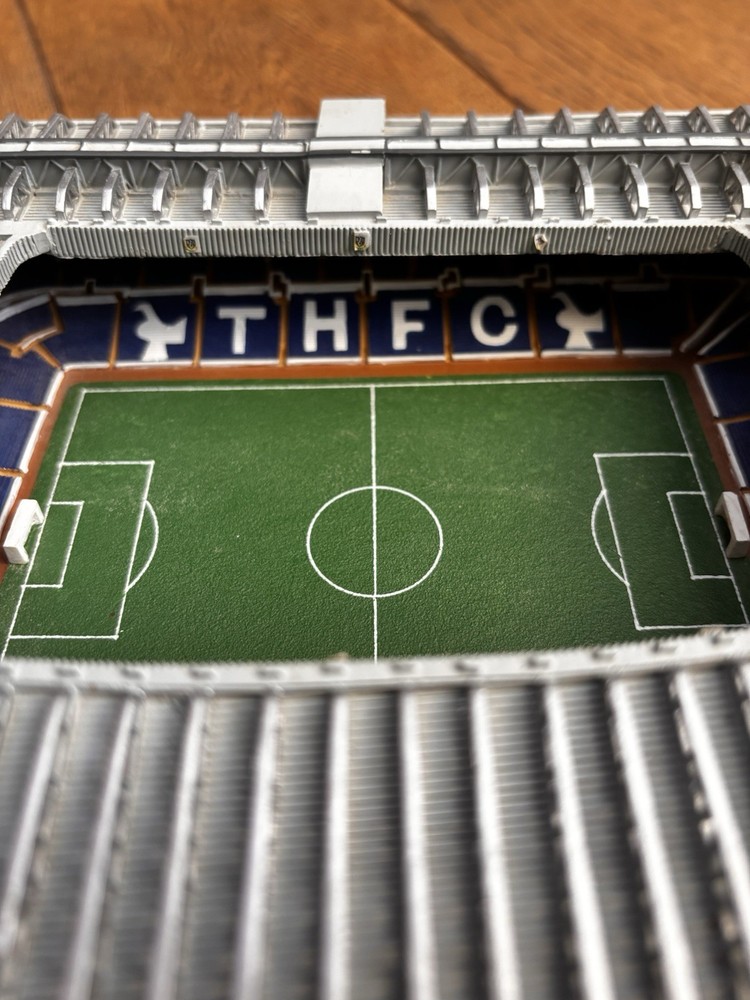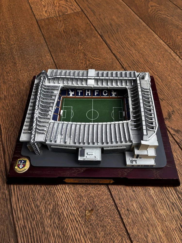 The TOTTENHAM HOTSPUR WHITE HART LANE Replica football stadium is a must-have for fans of the Tottenham Hotspur football club. This replica stadium is a perfect addition to any fan's collection, featuring intricate details and design inspired by the iconic White Hart Lane stadium. Whether you're a die-hard Tottenham Hotspur supporter or simply a football enthusiast, this replica stadium is sure to be a prized possession for you to showcase your love for the club. Only 3 defects on the top with a slight chipping but nothing massively noticeable