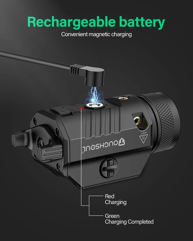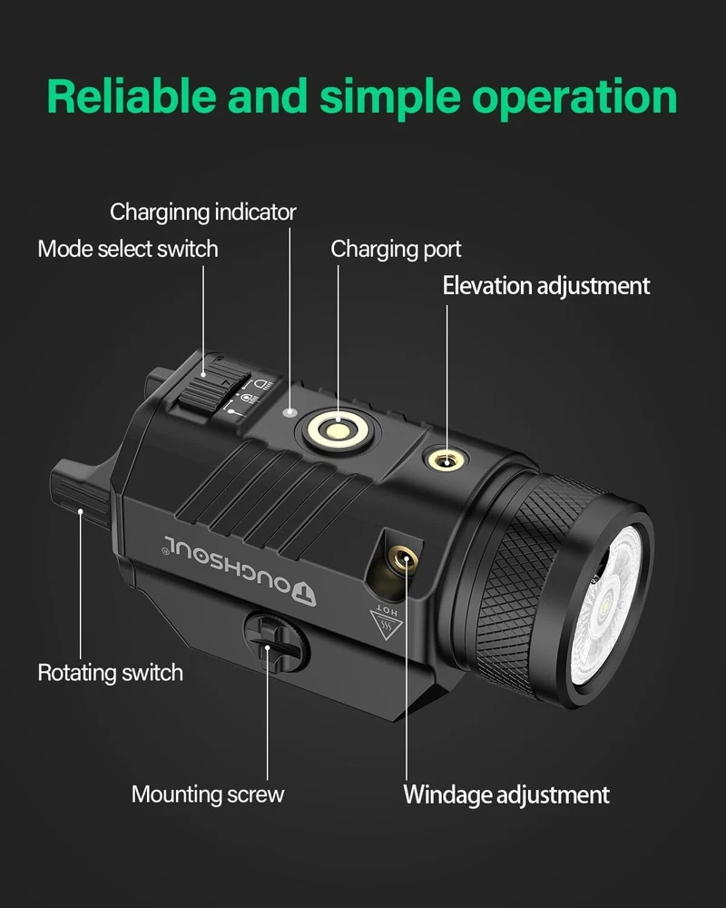 Product Description Key Features The output of the green beam is <5mW, the class is 3R. GL Beam & LED: Switch between white light only, GL beam only, and white light & GL beam combined by pressing the buttons. Multi Tactical Modes. Standard Tactical operation settings with ease, simple and direct to enter constant on, momentary on, strobe modes, not complex circulation like the normal flashlights. The buttons can make your operation more accurate and quicker. Super Bright Gunlight: 208m beam up to 1200 lumens. It is much brighter than most other similar models pistol light. Built in Rechargeable Battery: TF-5020 pistol flashlight laser combo is powered by built-in rechargeable battery. The Magnetic USB port is much more durable and waterproof than the traditional micro USB port. Made of special polymer, lightweight and durable. SHIPPING 1. Please make sure the delivery address is correct before payment. 2. Products will be shipped out within 1 working days after payment confirmation. 3. We are not responsible for any customs tax or import tax. 4. We are sincerely sorry if you do not receive your items in the limited time, please contact us first. We will handle it together with you to get your satisfaction again. RETURN 1. Returns are accepted. 30-day returns for full refund or exchange. 2. Shipping and handling charges are free. FEEDBACK 1. We highly respect customers' advice, praise and complaints, absorbing every useful information to get a better product supplying. 2. When you are satisfied with products and service, please leave positive feedback, we will slove it for you asap. 3. If you have any problem regarding your transaction, please contact us first. We will try our best to meet your satisfaction rather than getting a poor feedback from you.