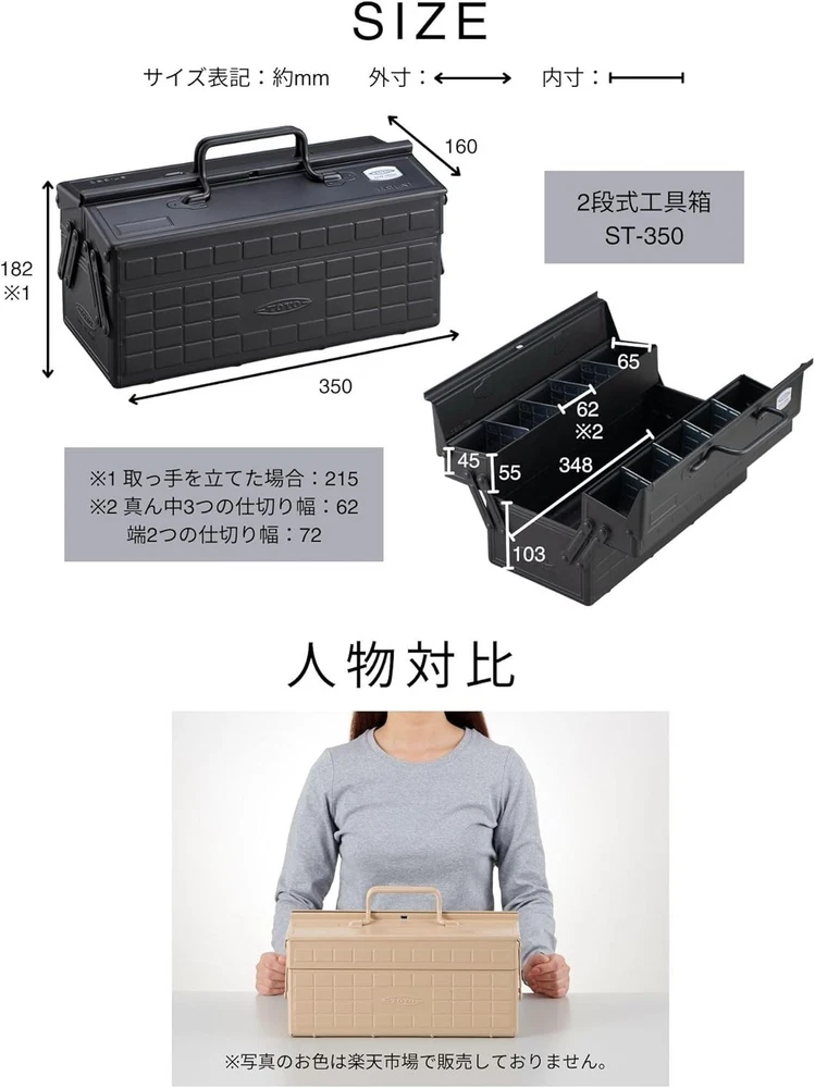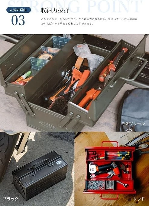 TOYO Steel Toolbox ST-350 2-Tier Steel Tool Box 350x160x215mm Japan Description About This Items Durable and reliable, this TOYO Steel 2-Tier Steel Toolbox ST-350 in Moss Green is proudly made in Japan. Its simple yet practical design ensures excellent durability, keeping your tools and small items well-organized and secure. The 2-tier structure allows efficient organization with upper and lower compartments, while the compact size makes it easy to carry. Perfect for both home use and professional settings, this high-quality toolbox delivers trusted Japanese craftsmanship. Appearance High-quality steel toolbox made in Japan 2-tier structure for easy organization Durable and long-lasting construction Compact size for convenient portability Simple and stylish moss green design Condition New. Included Items TOYO Steel Toolbox ST-350 2-Tier Steel Tool Box 350x160x215mm (Red or Green) Shipping We always send the item with a tracking number. So please place an order without any concern on delivery. You can always track the delivery status. Shipping is only available to the address registered in eBay. If you want us to send another address, please change your address on eBay and then place an order. Shipping is next Saturday. We do not mark merchandise values below value or mark items as ?gifts? ? Japan, US and International government regulations prohibit such behavior. About Importer's Obligation All import duties, taxes, and fees are already included in the item price. You will not be asked to pay any additional charges upon delivery. Please purchase with confidence.