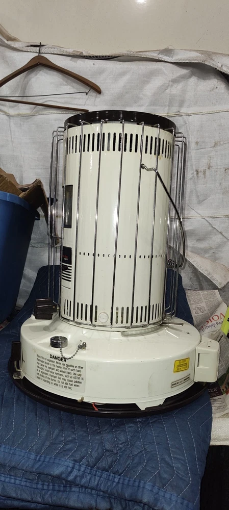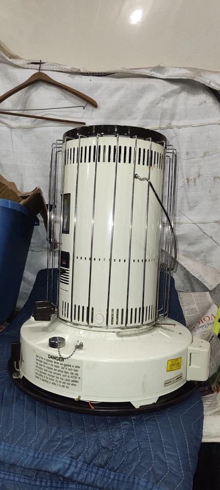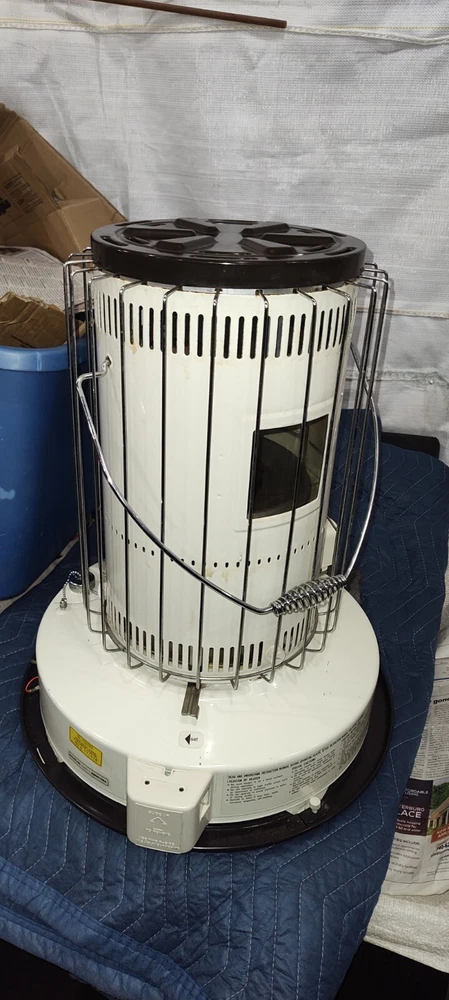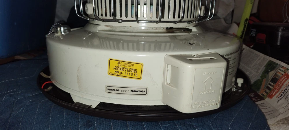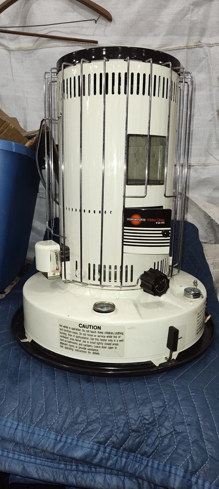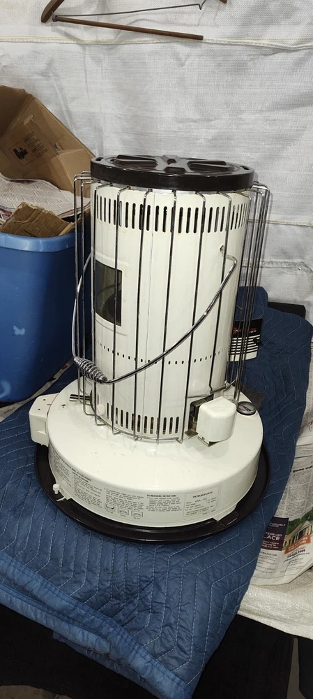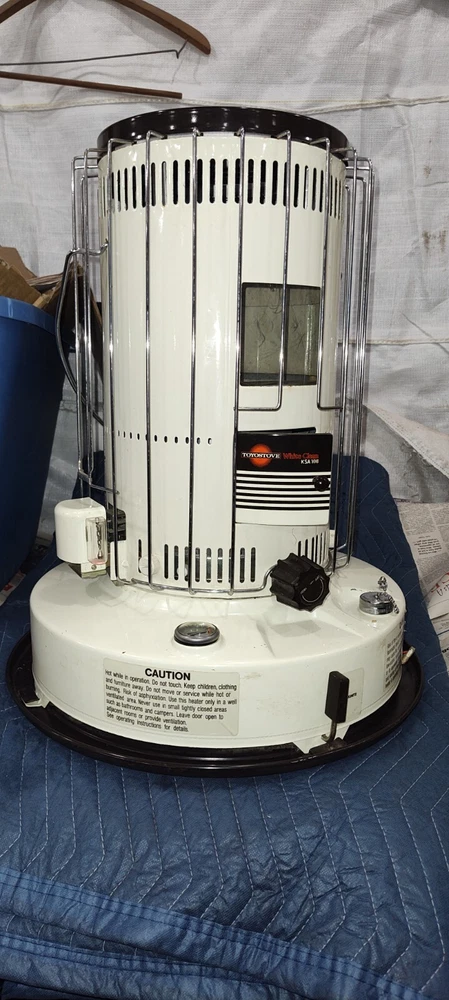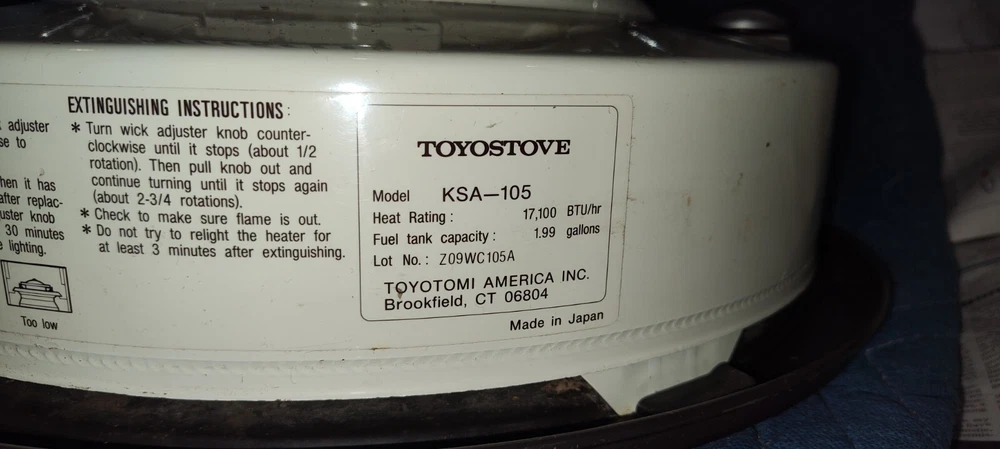 This product is a Toyostove KSA-105 portable kerosene heater with a 17,100 BTU rating. It is made in Japan and has a beige color. The heater can be mounted on the floor or wall and is powered by kerosene. Lot no Z09WC105A FUEL TANK CAPACITY 1.99 GALLONS SELLS LIKE YOU CAN SEE IT IN THE PHOTOS I BOUGHT IT AT AN ESTATE SALE NICE LOOKING UNIT