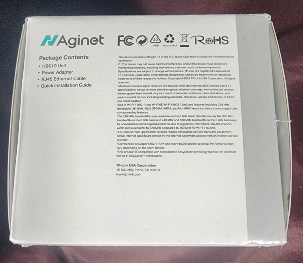 TP-Link BE11000 HB610 Aginet Whole Home Tri Band Mesh Wi-Fi 7 AP Single Pack Original factory seal has some damage. Please see all photos for condition of the seal.