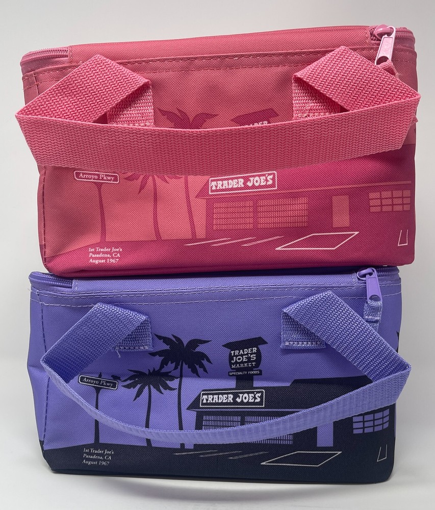 TRADER JOE'S MINI INSULATED TOTE LUNCH BAG - Lavendar & Pink (1 of each) 1.5 gal