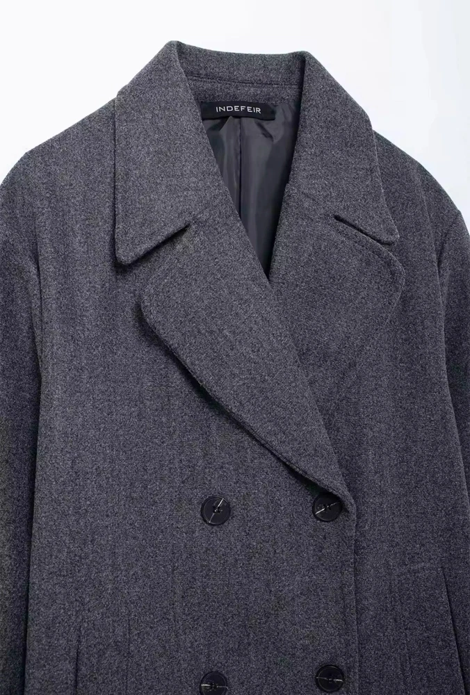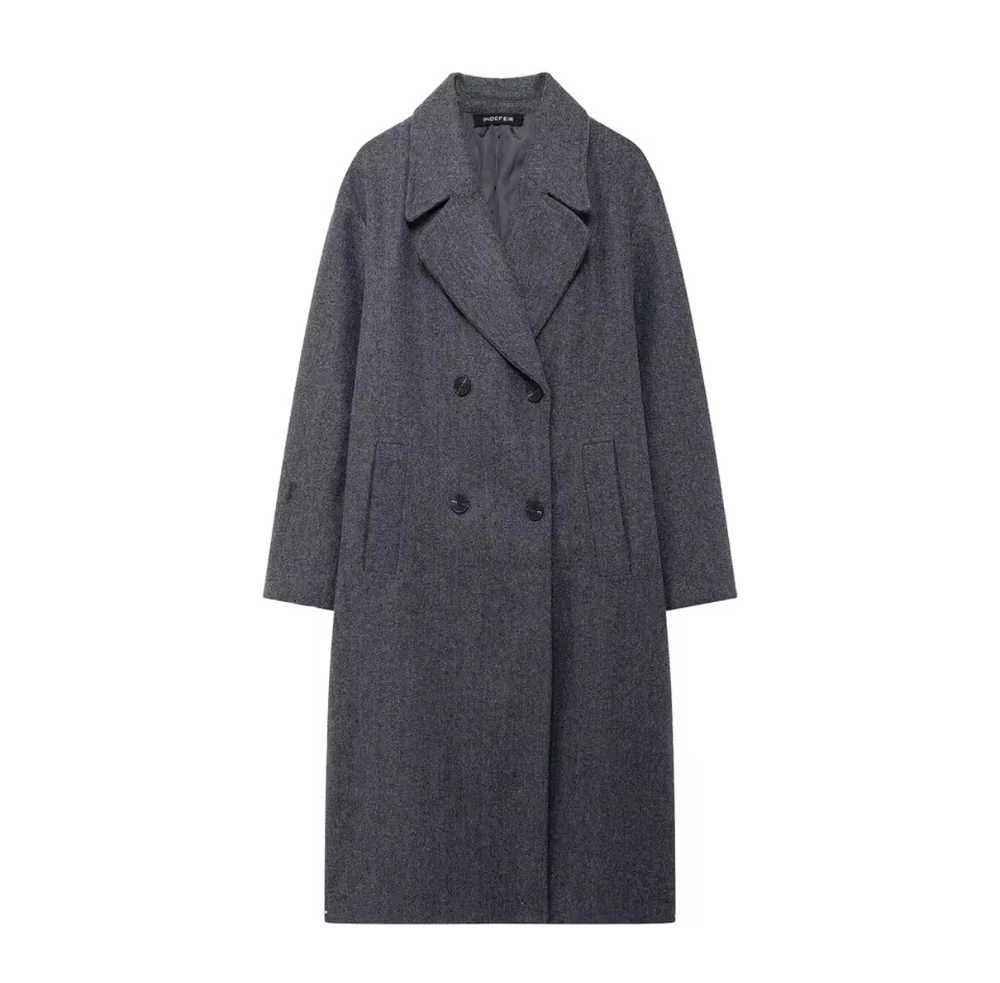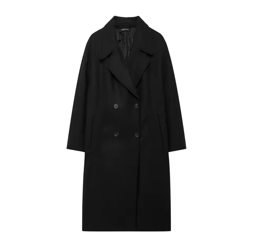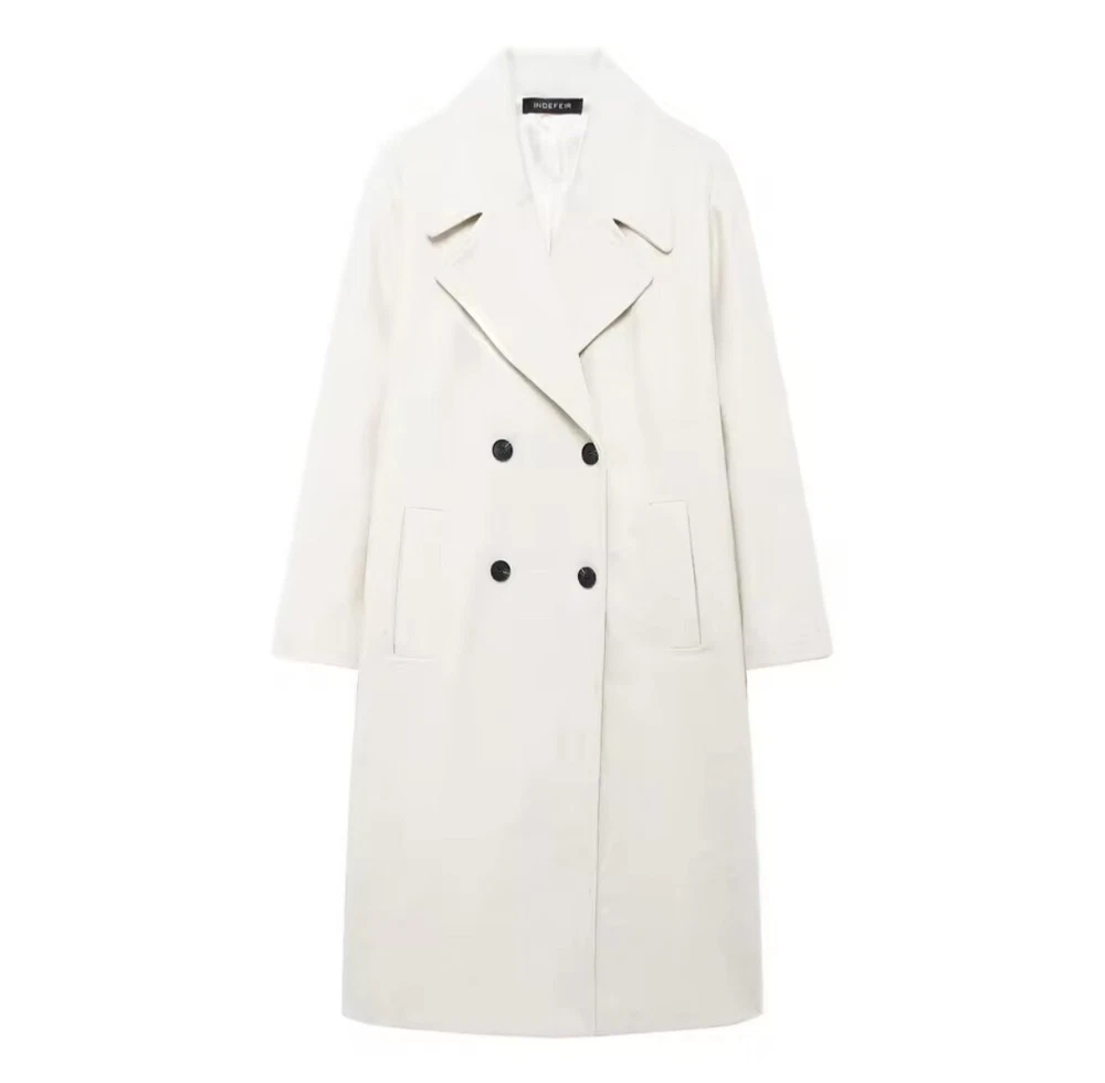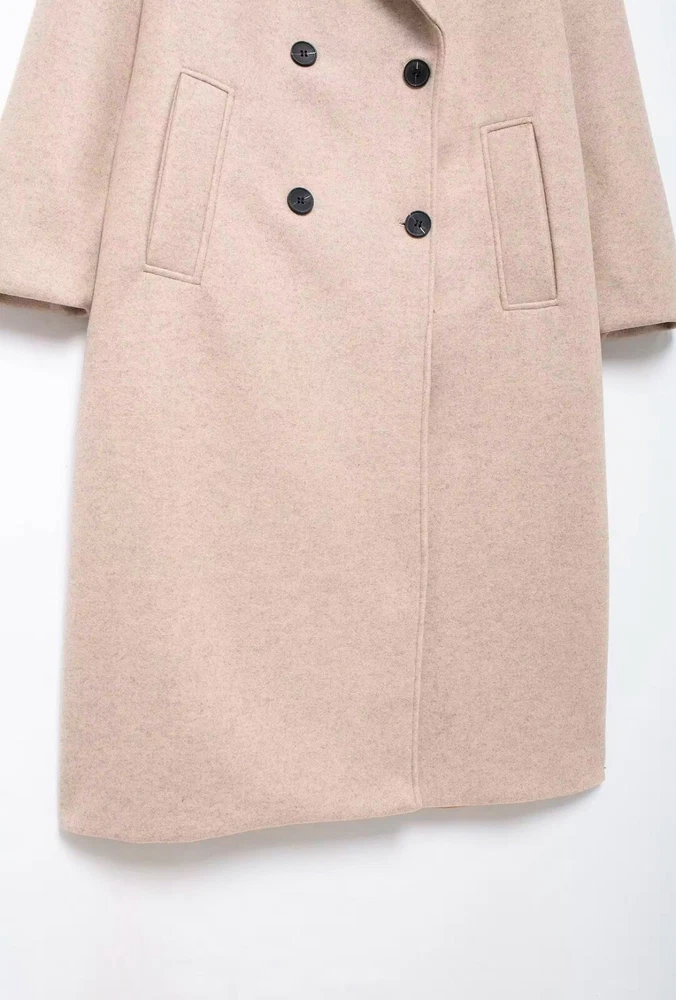 This TRAFZA women's winter coat is a stylish and warm choice for the season. Made of polyester, it features a double-breasted design with long sleeves and a lapel. The long length and formal style make it suitable for various occasions, from workwear to parties. Designed perfectly for staying comfortable and chic during the winter months.