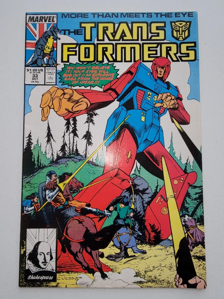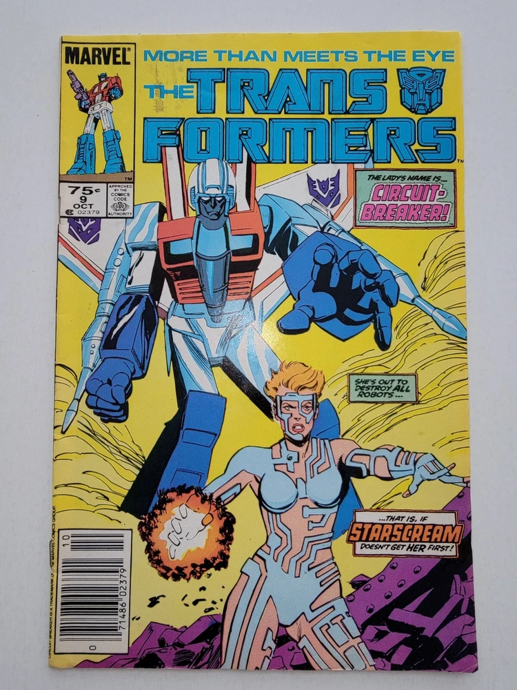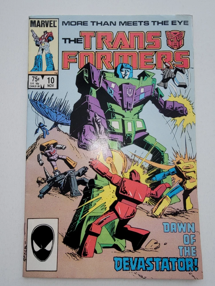 This lot includes 10 vintage Transformers comic books from Marvel Comics, published in 1984 during the Copper Age. The series features iconic characters like Bumblebee, Starscream, Optimus Prime, and Megatron. The comics are in very fine condition and include issues #5-44, with many first appearances. The artist is Bob Budiansky and cover art is by Kyle J Baker, showcasing action and adventure in the Transformers universe. * Includes #5 VF/NM #7 NM- #8 VF/NM 1st App of Dinobots #9 FN/VF 1st App Circuit Breaker Newsstand #10 VF/NM #11 NM- 1st App of Jetfire #12 FN/VF #21 FN/VF Newsstand #33 VF+ #44 FN- Newsstand small tear on back - Bagged and boarded - Shipped with Gemini packing to insure no damage during shipping - Usps Priority Check out our 1000s of comics in our store We combine shipping