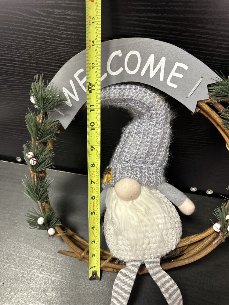TRANSPAC MERRY CHRISTMAS Welcome GNOME CHRISTMAS FRONT DOOR WALL WREATH NWT. Shipped with USPS Ground Advantage.