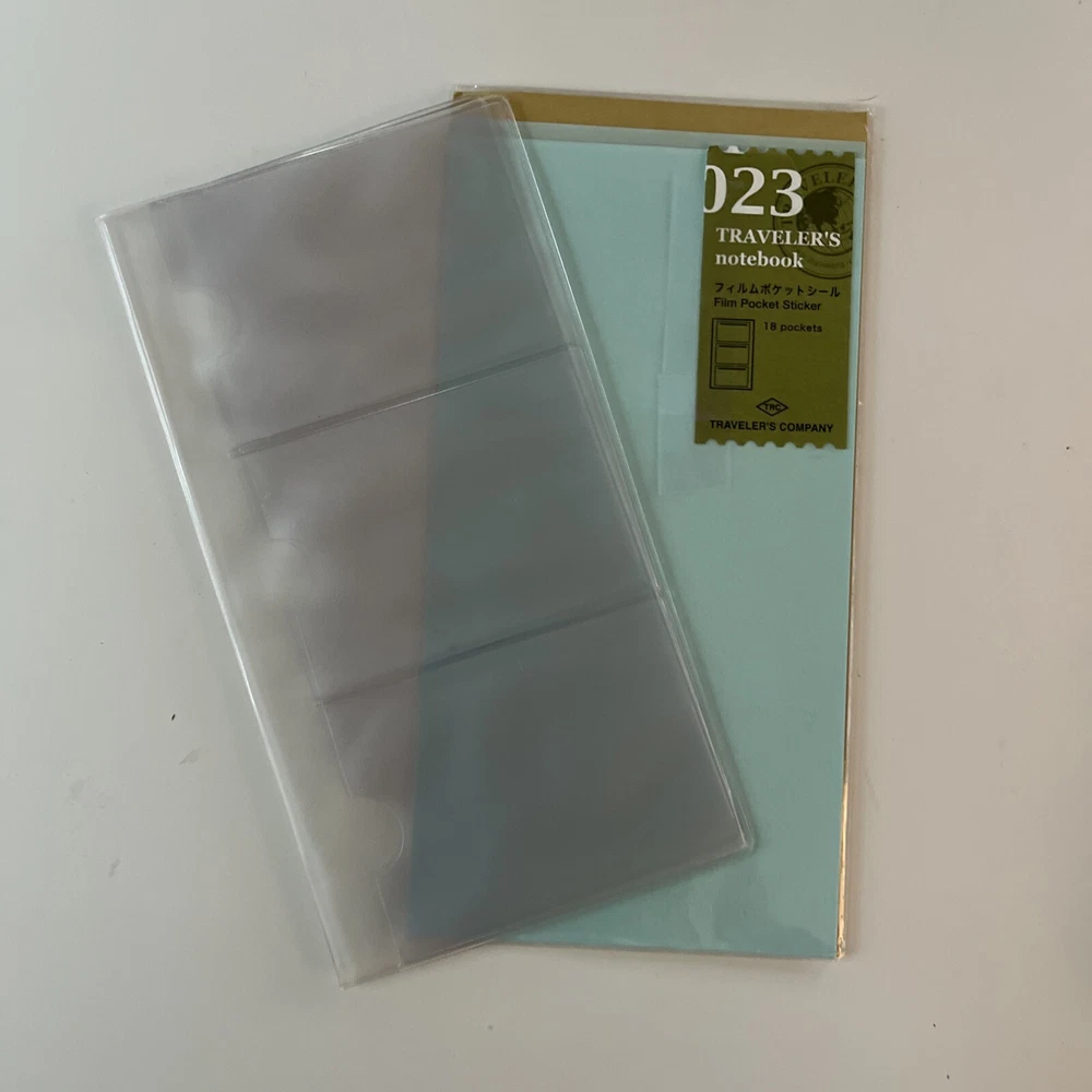 3 new inserts from travelers company 023 and plastic card folder are used Camel pen clip is used 2 rubber bands and 2 brass clips