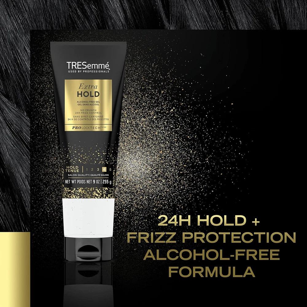 Product Description Tresemme Tres Two, Gel Extra Firm Control, Extra Hold, #4 Hair Styling Gel, 9 Ounce (Pack Of 10) TRESemme Extra Hold Frizz Control Hair Styling Gel, The best styling gel should hold your style without causing a sticky situation. TRESemme Extra Hold Hair Gel delivers all-day-long humidity resistance and keeps your style going strong without ever feeling stiff or sticky. After you put the work into your style, you better lock it in before you lose it. Built for control and ready to be styled, this Extra Hold Gel fights frizz all day long with 24-hour humidity protection, while continuously holding your style in place. This hair styling gel can be used on any hair type, as a curly hair gel or to lock in your wavy styles. Our unique, alcohol-free hair gel formula is great for all hair types and designed to add lasting shine to your style. Step 1: Prep your hair with your favorite TRESemme shampoo and conditioner. Step 2: Start by dispensing a quarter-sized drop of TRESemme Extra Hold Hair Gel into your hands and use fingers to evenly coat towel-dried hair, creating your preferred style. Add more hair styling products as needed. TRESemmé Extra Hold Frizz Control Hair Styling Gel, 9 oz MEGA HOLD HAIR GEL: TRESemmé Extra Hold Hair Gel adds long-lasting shine and firm hold without leaving hair looking sticky or wet ANTI-FRIZZ GEL: This alcohol-free hair styling gel delivers all-day control with humidity resistance to help keep frizz away LOCK IN YOUR STYLE: TRESemmé Extra Hold Hair Gel for women will keep you in control and your hair game strong TREND LED, RIGOROUSLY TESTED: Ingredients in this hair gel are carefully selected to ensure your hair receives the best possible care. We don't test on animals & are PETA Approved HAIR CARE TIPS FROM OUR STYLISTS: Dispense a quarter-size drop into your hands and use your fingers to evenly coat damp hair, creating your desired style. Add more gel as needed EXTRA HOLD HAIR GEL: This gel is a professional-quality clean-feel styling gel that doesn’t dry out your hair. It delivers all-day control with humidity resistance to help keep frizz away NO CRUNCH: Our alcohol-free hair gel adds long-lasting shine and firm hold without leaving hair looking sticky PROTECT HAIR WHILE USING HAIR DRYER, STYLING TOOLS & APPLIANCES: Apply hair gel before using your hair dryer, styling tools & appliances to protect hair from damaging heat while defining your hair style with an extra hold hair gel. VITAMIN B 5 FOR VOLUME AND SHINE: Hair will appear healthy, thicker, with more volume and shine thanks to the Vitamin B 5 in this Extra Hold hair gel. FRIZZ CONTROL IN HIGH HUMIDITY: Frizz control hair gel with extra hold lets you rock your hairstyle and curly hair with confidence without worrying about the humid weather. HOW TO APPLY: Dispense a quarter-sized drop of Extra Hold hair gel into hands. Use fingers to evenly coat towel-dried, clean hair, and work into your preferred style. Add more product if needed. Use your hair dryer or air-dry. MORE THAN HAIR PRODUCTS: TRESemmé is committed to advancing the next generation of female leaders by creating an intentional momentum forward. Find out more about how at #WomenLeadTheWay. Inactive Ingredients Water (Aqua) Vp/Dimethylaminoethy|methacrylateCopolymer PPG-5-Ceteth-20 Trisopropanolamine Oleth-20 Carbomer PVP Dmdm Hydantoin Sorbitol Propylene Glycol Fragrance (Parfum) Peg-12 Dimethicone Olealkonium Chloride Tetrasodium EDTA Panthenol Gelatin/Keratin Amino Acids/Lysine Hydroxypropyltrimonium Chloride Ext. Violet 2 (Ci 60730). Ingredients Water (Aqua), Vp/Dimethylaminoethy|methacrylateCopolymer, PPG-5-Ceteth-20, Trisopropanolamine, Oleth-20, Carbomer, PVP, Dmdm Hydantoin, Sorbitol, Propylene Glycol, Fragrance (Parfum), Peg-12 Dimethicone, Olealkonium Chloride, Tetrasodium EDTA, Panthenol, Gelatin/Keratin Amino Acids/Lysine Hydroxypropyltrimonium Chloride, Ext. Violet 2 (Ci 60730). Active Ingredients NA