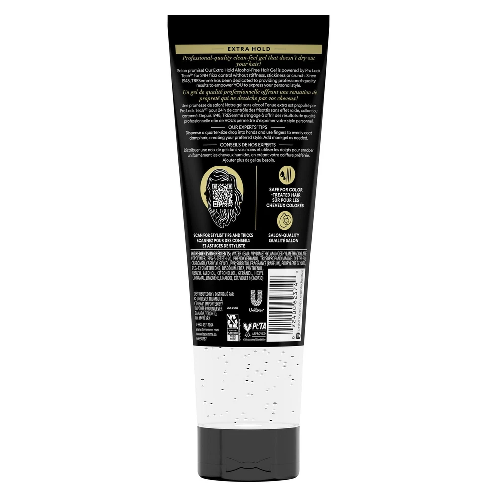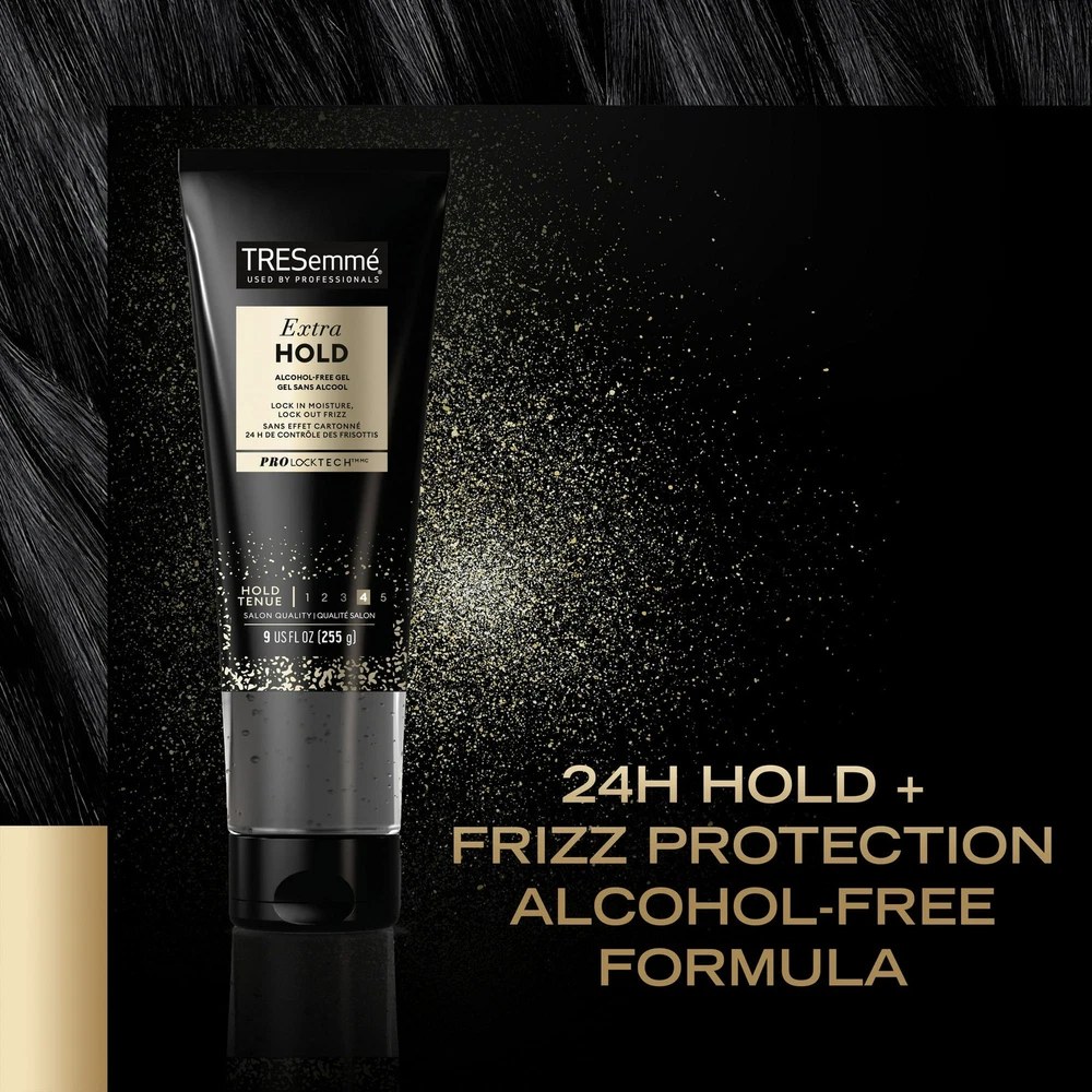 Product Description Tresemme Tres Two, Gel Extra Firm Control, Extra Hold, #4 Hair Styling Gel, 9 Ounce (Pack Of 2) TRESemme Extra Hold Frizz Control Hair Styling Gel, The best styling gel should hold your style without causing a sticky situation. TRESemme Extra Hold Hair Gel delivers all-day-long humidity resistance and keeps your style going strong without ever feeling stiff or sticky. After you put the work into your style, you better lock it in before you lose it. Built for control and ready to be styled, this Extra Hold Gel fights frizz all day long with 24-hour humidity protection, while continuously holding your style in place. This hair styling gel can be used on any hair type, as a curly hair gel or to lock in your wavy styles. Our unique, alcohol-free hair gel formula is great for all hair types and designed to add lasting shine to your style. Step 1: Prep your hair with your favorite TRESemme shampoo and conditioner. Step 2: Start by dispensing a quarter-sized drop of TRESemme Extra Hold Hair Gel into your hands and use fingers to evenly coat towel-dried hair, creating your preferred style. Add more hair styling products as needed. TRESemmé Extra Hold Frizz Control Hair Styling Gel, 9 oz MEGA HOLD HAIR GEL: TRESemmé Extra Hold Hair Gel adds long-lasting shine and firm hold without leaving hair looking sticky or wet ANTI-FRIZZ GEL: This alcohol-free hair styling gel delivers all-day control with humidity resistance to help keep frizz away LOCK IN YOUR STYLE: TRESemmé Extra Hold Hair Gel for women will keep you in control and your hair game strong TREND LED, RIGOROUSLY TESTED: Ingredients in this hair gel are carefully selected to ensure your hair receives the best possible care. We don't test on animals & are PETA Approved HAIR CARE TIPS FROM OUR STYLISTS: Dispense a quarter-size drop into your hands and use your fingers to evenly coat damp hair, creating your desired style. Add more gel as needed EXTRA HOLD HAIR GEL: This gel is a professional-quality clean-feel styling gel that doesn’t dry out your hair. It delivers all-day control with humidity resistance to help keep frizz away NO CRUNCH: Our alcohol-free hair gel adds long-lasting shine and firm hold without leaving hair looking sticky PROTECT HAIR WHILE USING HAIR DRYER, STYLING TOOLS & APPLIANCES: Apply hair gel before using your hair dryer, styling tools & appliances to protect hair from damaging heat while defining your hair style with an extra hold hair gel. VITAMIN B 5 FOR VOLUME AND SHINE: Hair will appear healthy, thicker, with more volume and shine thanks to the Vitamin B 5 in this Extra Hold hair gel. FRIZZ CONTROL IN HIGH HUMIDITY: Frizz control hair gel with extra hold lets you rock your hairstyle and curly hair with confidence without worrying about the humid weather. HOW TO APPLY: Dispense a quarter-sized drop of Extra Hold hair gel into hands. Use fingers to evenly coat towel-dried, clean hair, and work into your preferred style. Add more product if needed. Use your hair dryer or air-dry. MORE THAN HAIR PRODUCTS: TRESemmé is committed to advancing the next generation of female leaders by creating an intentional momentum forward. Find out more about how at #WomenLeadTheWay. Inactive Ingredients Water (Aqua) Vp/Dimethylaminoethy|methacrylateCopolymer PPG-5-Ceteth-20 Trisopropanolamine Oleth-20 Carbomer PVP Dmdm Hydantoin Sorbitol Propylene Glycol Fragrance (Parfum) Peg-12 Dimethicone Olealkonium Chloride Tetrasodium EDTA Panthenol Gelatin/Keratin Amino Acids/Lysine Hydroxypropyltrimonium Chloride Ext. Violet 2 (Ci 60730). Ingredients Water (Aqua), Vp/Dimethylaminoethy|methacrylateCopolymer, PPG-5-Ceteth-20, Trisopropanolamine, Oleth-20, Carbomer, PVP, Dmdm Hydantoin, Sorbitol, Propylene Glycol, Fragrance (Parfum), Peg-12 Dimethicone, Olealkonium Chloride, Tetrasodium EDTA, Panthenol, Gelatin/Keratin Amino Acids/Lysine Hydroxypropyltrimonium Chloride, Ext. Violet 2 (Ci 60730). Active Ingredients NA