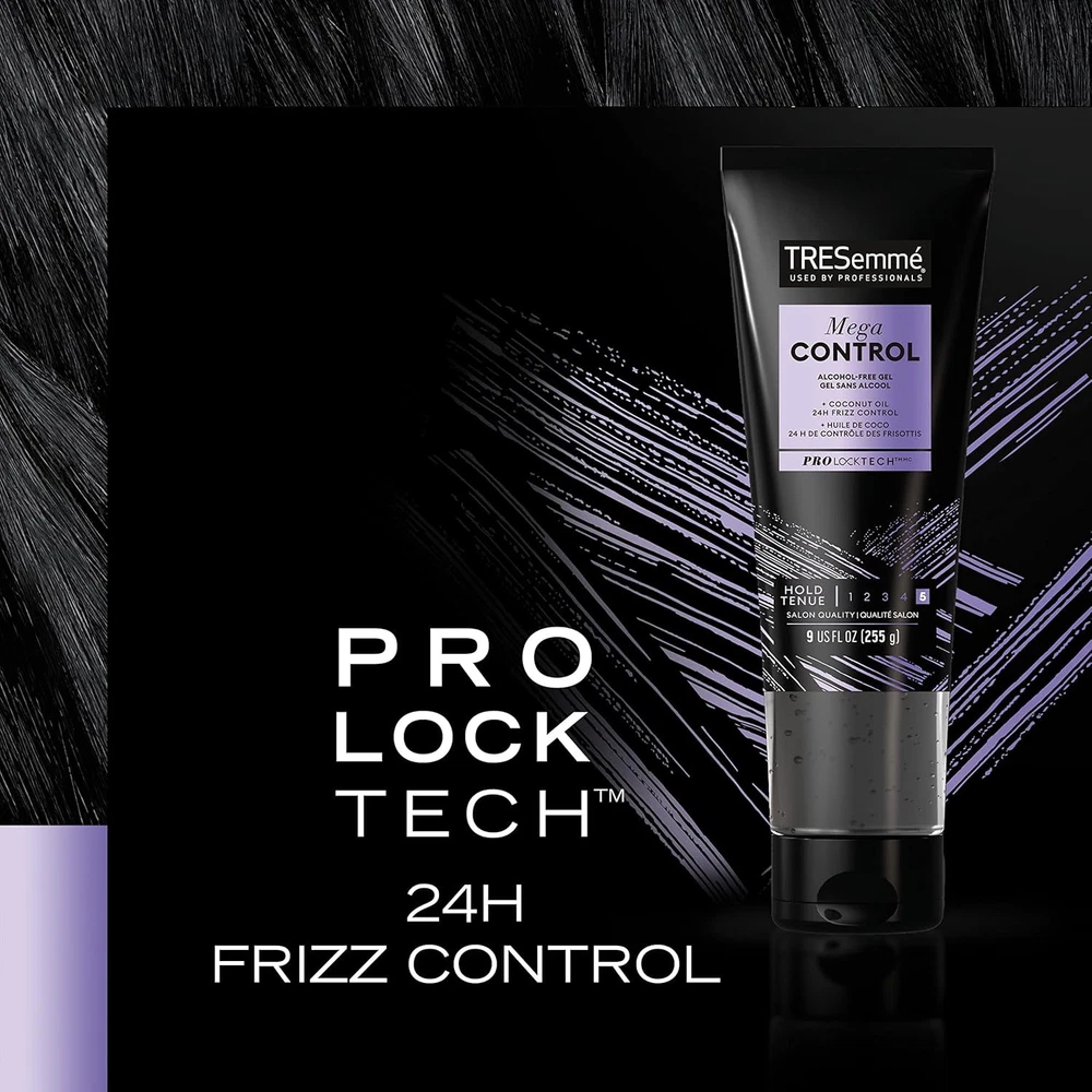 Product Description Tresemme Tres Two, Mega Control, Hair-Gel, for 24-Hour, Frizz Control #5, 9 Ounce (Pack Of 3) TRESemmé Mega Frizz Control Hair Styling Gel, Need a styling gel that delivers mega hold without feeling stiff or sticky? TRESemme Mega Control Hair Gel provides all-day resistance to humidity and keeps your style going strong without crunchy stiffness. After you put the work into your style, you better lock it in before you lose it. Sprays work best to lock in some styles, but when you're aiming for a sleek, tight look, you should use a styling hair gel for extra hold and humidity control. Built for control and ready to be styled, TRESemme Mega Control Hair Gel is an anti-frizz gel, giving you all-day hold with built-in 24-hour humidity protection. This mega control hair gel is perfect for slicking, shaping, or sculpting hair for that perfect look. Our unique, alcohol-free hair gel formula is great for all hair types and designed to keep your hairstyle on lock without leaving hair looking wet or feeling sticky. Step 1: Prep your hair with your favorite TRESemme shampoo and conditioner and hair styling products. TRESemmé Mega Frizz Control Hair Styling Gel, 9 oz MEGA FIRM STYLING HAIR GEL: TRESemmé Mega Control Hair Gel is a styling gel that adds long-lasting shine and mega hold to your hair for all-day control ANTI-FRIZZ GEL: This alcohol-free hair styling gel delivers all-day control with humidity resistance to help keep frizz away MAXIMUM HOLD: TRESemmé Mega Control Hair Gel is a stiff hair gel that locks in your style without ever looking sticky or wet TREND LED, RIGOROUSLY TESTED: Every ingredient is carefully selected to ensure your hair receives the best possible care. We do not test on animals and our hair products are PETA-approved HAIR CARE TIPS FROM OUR STYLISTS: Dispense a quarter-size drop into your hands and use your fingers to evenly coat damp hair, creating your desired style. Add more gel as needed FRIZZ FREE: Formulated with coconut oil, this formula gives all-day hold and 24-hour humidity resistance for resilient styles ALL-DAY HOLD: Level 5 hold, our strongest hold hair gel, is Infused with coconut oil. Achieve moisturized hair without compromising on hold CRUELTY-FREE: TRESemmé prohibits animal testing for our hair products and the ingredients used in them, anywhere in the world DO IT WITH STYLE: With professional quality hair products like our Mega Control Alcohol-Free Gel, you can confidently create your personal style Super firm control. Resistance To Lock Out Frizz And Lock In Style All Day Holds For 24 Hours In High Humidity Mega Firm Control For All Hair Types Product Benefits Humidity Resistant, Frizz Control Hair Type Curly Material Type Free Mineral Oil Free, Sulfate Free, Alcohol Free, Aluminum Free, Formaldehyde Free Scent Unscented Liquid Volume 9 Fluid Ounces Ingredients WATER (EAU), VP/DIMETHYLAMINOETHYLMETHACRYLATE COPOLYMER, PPG-5-CETETH-20, PHENOXYETHANOL, TRIISOPROPANOLAMINE, OLETH-20, CAPRYLYL GLYCOL, CARBOMER, PVP, SORBITOL, FRAGRANCE (PARFUM), PROPYLENE GLYCOL, PEG-12 DIMETHICONE, DISODIUM EDTA, PANTHENOL, COCOS NUCIFERA (COCONUT) OIL, BENZYL ALCOHOL, CITRONELLOL, GERANIOL, HEXYL CINNAMAL, LIMONENE, LINALOOL, EXT. VIOLET 2 (CI 60730).