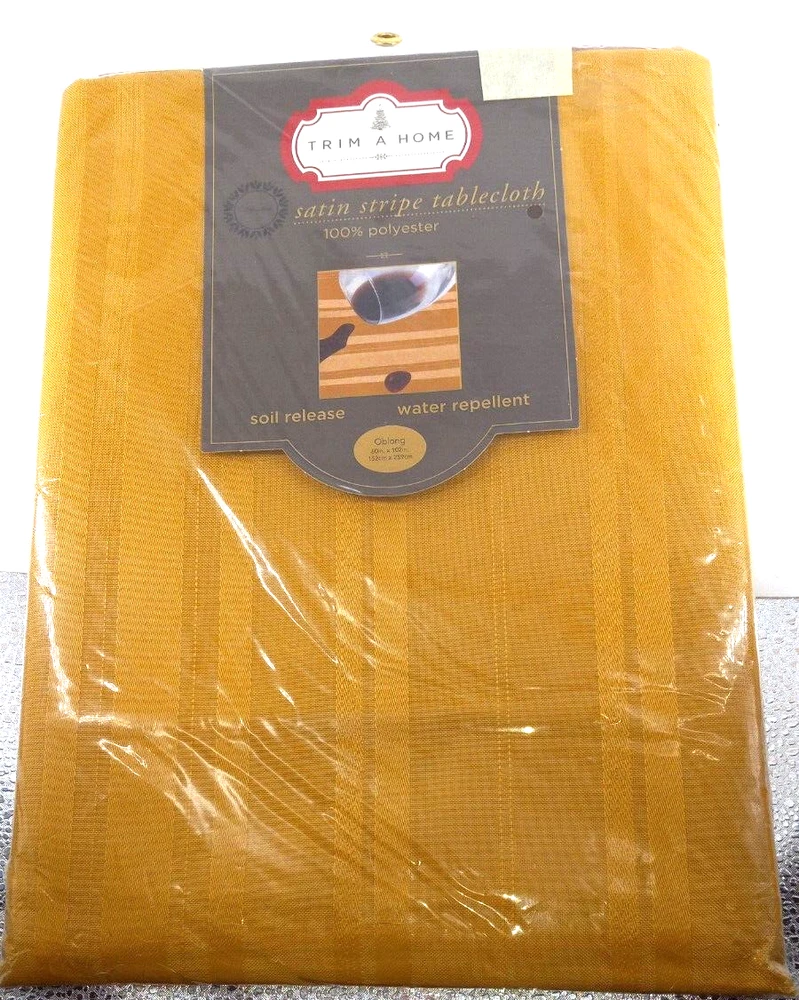 TRIM A HOME New Satin Stripe Polyester Tablecloth Oblong 60X102" Gold
