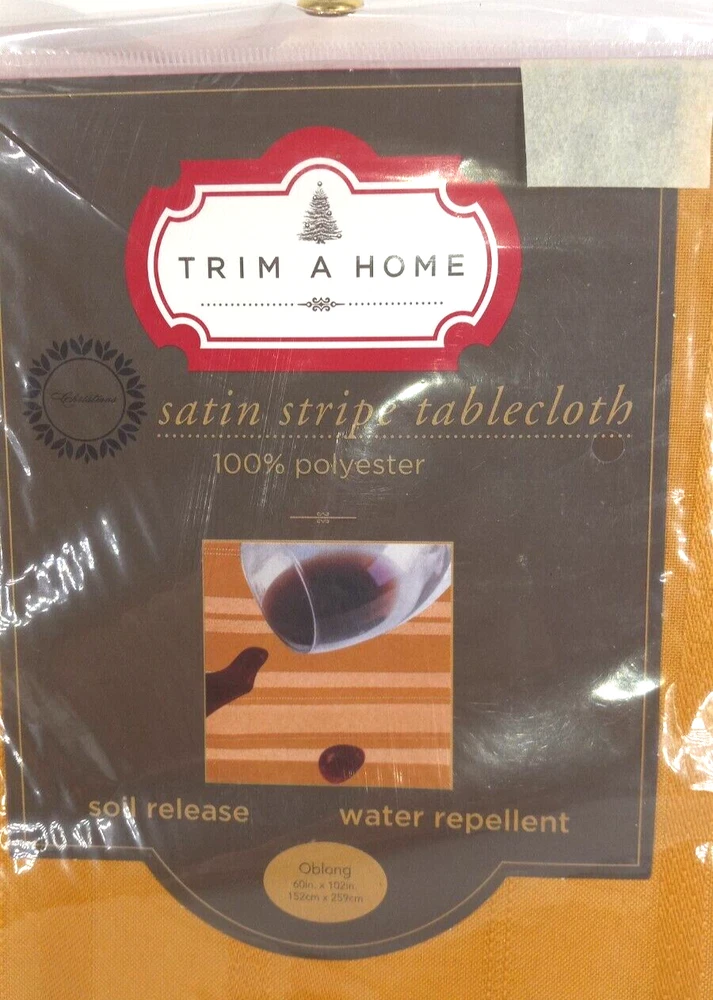 WE APPRECIATE OUR CUSTOMERS THANK YOU FOR SHOPPING WITH US!! TRIM A HOME New Satin Stripe Polyester Tablecloth Oblong 60X102 Gold *Please look at pictures as they are part of the description/details. *New *Thanks for looking! Please remember items listed as vintage or used will typically show age appropriate wear. I have provided lots of photos for you to see the general condition of each item. If you would like any further photos or information, please contact me and I will be happy to try and help. I do my best to describe items accurately. Pictures are considered part of the description. Cameras and/or computers can sometimes slightly alter colors. Any measurements should be considered approximate. If you need an exact measurement, please ask. Terms and Conditions : Once a purchase has been made, it is legally binding contract. Payments: Payment is due when purchase is made, Thank you for your prompt payment. *If payment is not received within 4 days of purchase, then a Non-Paying Buyer Dispute will be filed, and eBay may mark it against your account. SHIPPING: We ship daily (Mon-Fri not to include holidays) and will ship within two business day of receiving payment! I do accept returns if you are unhappy with your item for any reason. I ask that it be returned in the original condition you received it in. Please let me know right away if there is a shipping breakage. I will ask for photos of the box and item(s) to better prevent further breakages. Upon Receiving : If you are satisfied with your product(s), please leave some positive feedback. *We love hearing that you have received your purchase(s), and are content, delighted, and untroubled. *Once you receive your purchase(s), please inspect them for any damage during transit. Report any damage within 24hrs via eBay e-mail. Return Policy : You may return unworn, unwashed merchandise in its original condition with all tags attached. If you bought a brand-new item, it MUST be returned brand new (Sealed and Any returns MUST be sent back to us complete and in the same condition as delivered to you Unopened). Items must be in new or original condition (free of odor, markings etc.) and ready for resale. Any serial or product numbers must match the purchased item for refund. PLEASE NOTE that shipping will not be refunded . Upon time of purchase, you are agreeing to this return policy. CHECKOUT: Please make sure that your address on file with eBay is complete and correct as we must use the address you have with eBay. *If you have any questions about your purchase, delivery, or a possible product return; Please contact us immediately and directly through your eBay accounts message center! *We are Eco-Friendly, leaving the lightest possible impact on our environment! Whenever possible we will reuse packing material to aid with our Eco goals. Customer service and feedback: If you have any questions about your purchase, delivery, or a possible product return; Please contact us immediately and directly through your eBay account message center! Your satisfaction is our top priority! Our goal is to earn your 5-star 100% feedback. Thank You for buying from us!