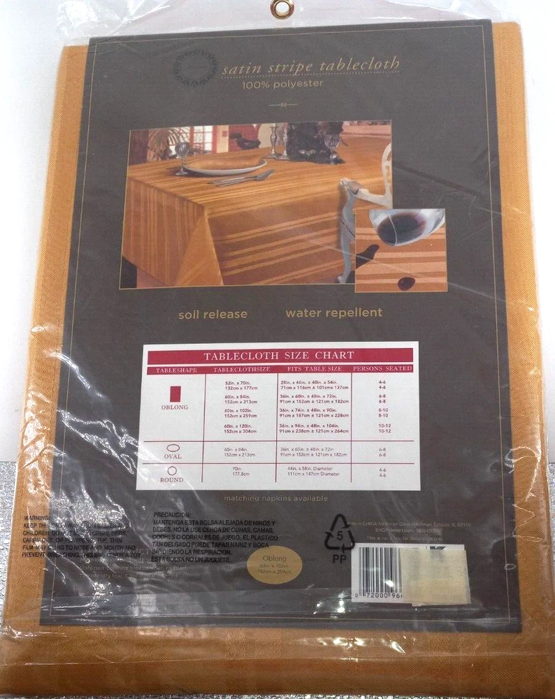 Item Length: 102" UPC: Does not apply MPN: Does Not Apply Color: Gold Pattern: Striped gtin13: Does not apply Item Width: 60" Shape: Oblong Country/Region of Manufacture: China Room: Any Room Brand: Trim A Home Model: Fabric Table Cover Material: 100% Polyester