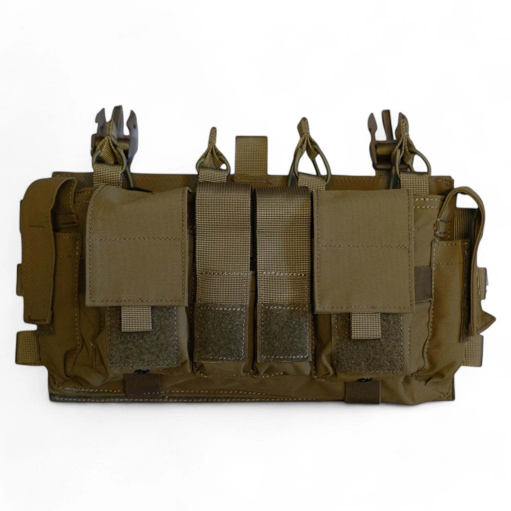 TRIPPS: Tactical Rig Interceptor Placard Panel System Modular, Multi-Compatible, High-Capacity Gear Organization The TRIPPS Tactical Rig Interceptor Placard Panel System offers a versatile and highly modular solution for professional Tacticians and survival enthusiasts. Optimizes your gear setups with organization flexibility and storage capacity. Featuring a Placard Panel System with a rear hook-and-loop attachment and 2 integrated (Male Pronged Buckles) Quick Disconnect (QD) , improving stability, secure gear attachment, and easy modular customization. Whether you're preparing for a tactical operation, a shooting competition, or an outdoor adventure, the TRIPPS can help intercept and overcome obstacles in various environments. Key Features Modular & Customizable Features 3 modular web loops on each side for storage or reconfiguring with additional buckles. Equipping Buckles improves flexibility as a multi-plate carrier-compatible system Durability & Construction Crafted with hardened and flexible polymer composites, including polyamides and polyethylene terephthalate (PET). Utilizing a balancing blend of 500 Denier Nylon, saving weight, lightweight yet solid and durable Massive Storage Capacity 4 Multi-Compatible Rifle Slots : Securely fits most rifle magazines, including AR/M4 (5.56, .223, .300, .224) and AK-style mags ( 5.45, 5.56). 2 Pistol Slots : Compatible with 9mm, .40, and .45 ACP magazines. 2 Large Utility Slots : Perfect for multitools, ammo, or medical supplies like a tourniquet. 2 Long Slim Utility Pouches : Ideal for storing flashlights, batteries, or chem lights. 1 Large Rear Pocket : Can store documents, extra magazines, medical supplies, or other mission-critical gear. 4 Elastic Secure Loop: 4 elastic loops provide additional gear storage for smaller essentials such as chem lights, flashlights, and medical supplies. Quick Access & Organization Optimized for easy access to all compartments, keeping your gear organized and ready when needed. Placard Panel System & Interchangeability Rear Hook-and-Loop Attachment It easily attaches to compatible rigs and platforms, making it adaptable to various tactical setups, and allows interchange between equipment variations specific to your mission. Quick Disconnect System Integrated QD (Male Pronged) buckles enhance the rig's stability, helping prevent loss with poorly secured equipment practices while providing interchange between equipment variations specific to your mission with 2 simplistic polymer QD buckles. TRIPPS Ideal for tacticians such as military professionals, law enforcement officers, security forces, outdoor enthusiasts, and survivalists. The TRIPPS can help you stay organized and prepared with streamlined access to a variety of essentials. With ample storage space for both rifle and pistol magazines, tools, medical supplies, and more, this system helps optimize your tactical setup for performance, security, and reliability. Have what you need when needed and minimize clutter. Magazines and accessories are not included; they are shown for illustrative purposes only.