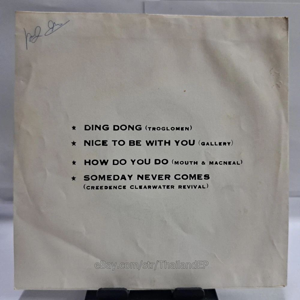 Welcome to The World of ""Thailand Vinyl Records"".Very rare and beutiful picture of cover. Check everyday . This item is for a true 7" single collector. It was printed and sold locally as limited EP back in the early 70's. Only few copies were spread outside Thailand. Most professional record collectors know that it is scarce nowadays and is absolutely a collector's item. If you know a UK magazine called RECORD COLLECTOR then you must have read many articles mentioning THAILAND EP and this is it !!! Here is your chance to own one-of-a-kind piece of Asian's 7" single history. Description Records !!! DETAIL SONG and ARTIST !!! Side A: A1 = Troglomen - Ding Dong / A2 = Gallery - Nice To Be With You Side B: B1 = Mouth & Macneal - How Do You Do / B2 = Creedence Clearwater Revival - Someday Never Comes Label&Catalogue number : : TK710 Country of release : THAILAND Condition (Sleeve/Disc) : VG+ / VG and pls see picture too. Shipping I am seller in Thailand not USA.So I can not ship 4$ as policy pls understand this real rate from oversea . Price for shipping(Airmail )&Packaging to worldwide only US 14.99 USD .Except Asia and JAPAN only 14.99 USD. You can save cost for combine shipping only 3 USD$ per each. 2xEP=17.99 USD$ , 3xEP=20.99 USD$ . My package very safety by big cardboard don't worry about your's EP/PS/LP. Time delivered 21-45 days . ***All item : have tracking system no need add money*** **For normal shipping (Airmail).Time delivery to ITALY maybe use 1-2 Months, France use 1-2 Months.But Don't worry item will arrived to you sure!!.For fastest and High value you can use Express Mail Service cost for1 EP =39 USD.EP will arrived to you within 5-7 Days. ***All shipment have fully tracking system *** Payment PAYMENT : I accept the follow payment by eBay managed , . My ID eBay provide by eBay .Account will be provide at the end auction.Charges to be covered by winner. If you have question pls email to me anytime i can answer immediatly. I have many EP,PS 7" Thailand Pls Click => View seller's other items Check my feedback , I care and honest all customer.I welcome 0 feedback but contact me first if you will bidding. Good Luck !!!! and Enjoy . 45 RPM / EP/ LP Grading Scale: Mint /NM/ Excellent(VG++) /VG+/ VG /G+ /Good(G) / Fair / Poor / Bad (According Record Collector Magazine (UK)) LOT164-21TK710