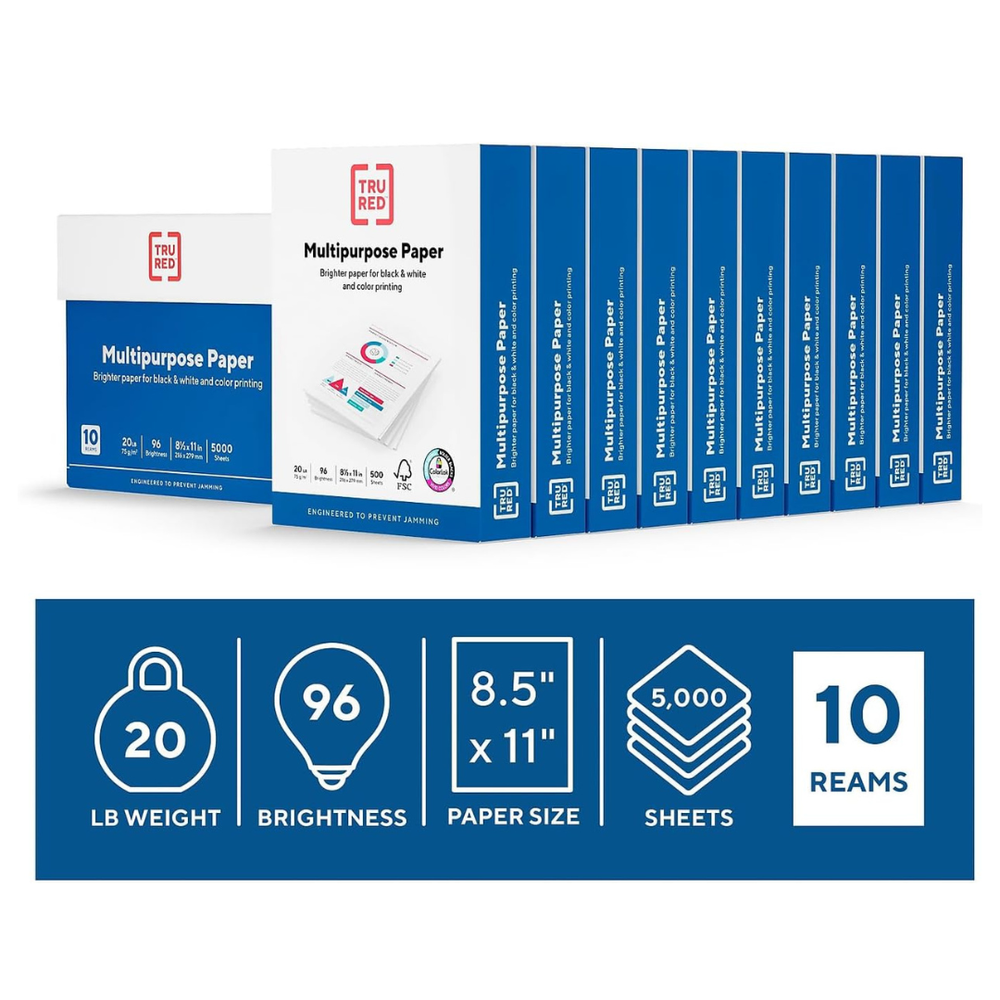 TRU RED 8.5" x 11" Copy Paper, 20 lbs., 92 Brightness, 500 Sheets/Ream, 5 Reams