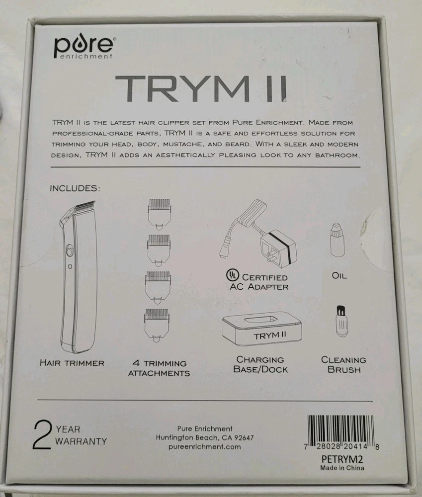 TRYM II - Rechargeable Modern Hair Clipper Kit - Ultra-Sleek Hair Body Mustache Please inspect all pictures and description . **We try to adequately describe each item (photographs) & disclose flaws/blemishes. **C olors may slightly differ due to monitor settings. If you have any questions or would like to see additional photos, please do not hesitate to contact us. We will try to respond to your question or request promptly. **If you encounter a problem with your item, please contact us.. Items ship out the same or next day. Items are from a smoke-free environment . Items stored in an air conditioned area. TRYM II - Rechargeable Modern Hair Clipper Kit - Ultra-Sleek Hair Body Mustache.