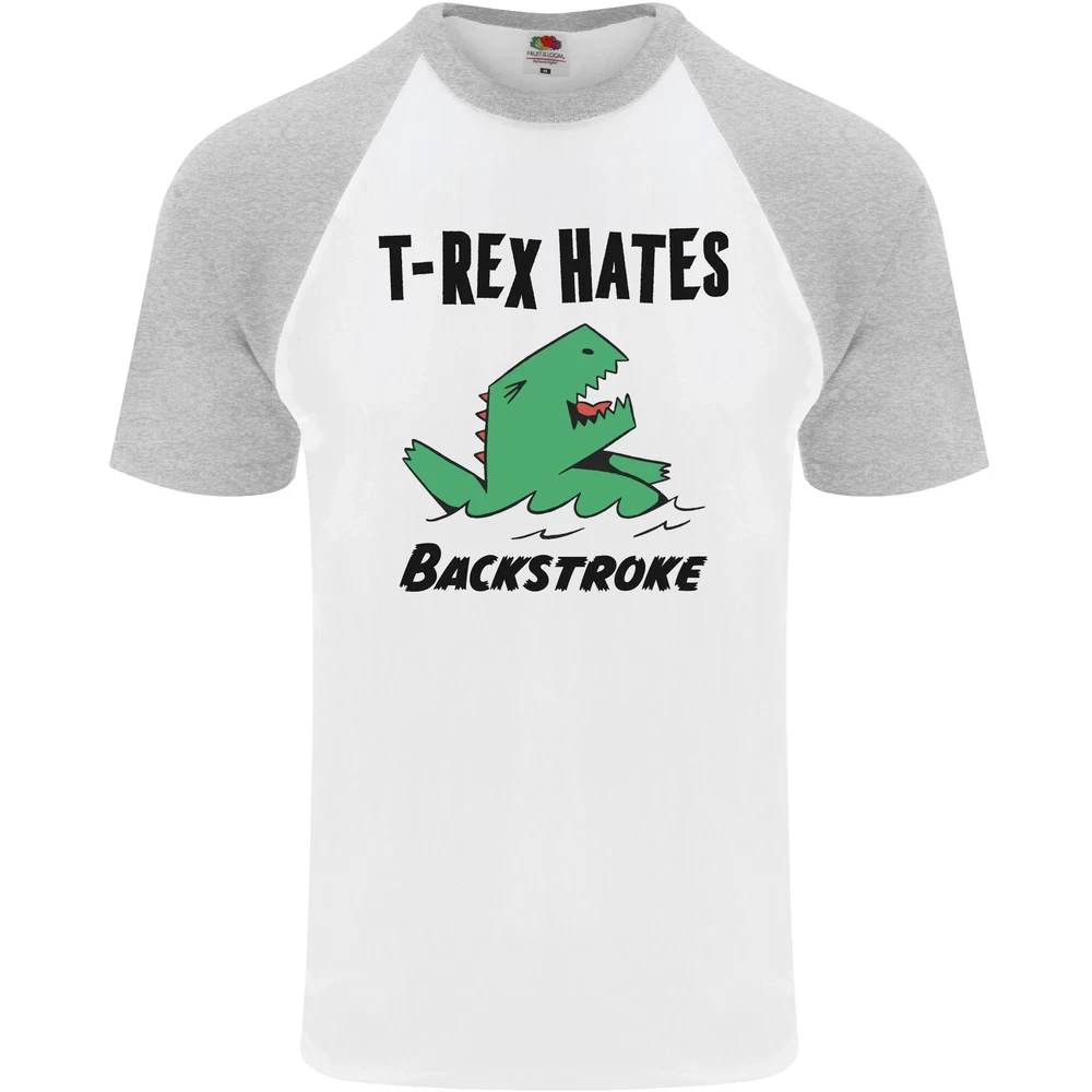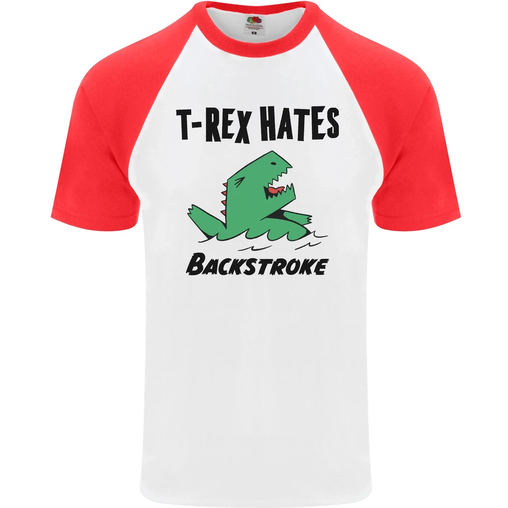 T-Rex Hates Backstroke Funny Swimming Swim Mens S/S Baseball T-Shirt